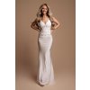 Krásne svadobné šaty, ktoré za sebou zanechajú závan luxusu a elegancie. Romantická krajka zdobená jemnými kamienkami, priliehavý strih a riasenie v oblasti bokov - na spoločenskej udalosti budete zaručene kráľovnou. Materiál šiat je elastický, vzadu sa zapínajú zipsom, na prsiach sú vystužené a ramienka sú nastaviteľné.