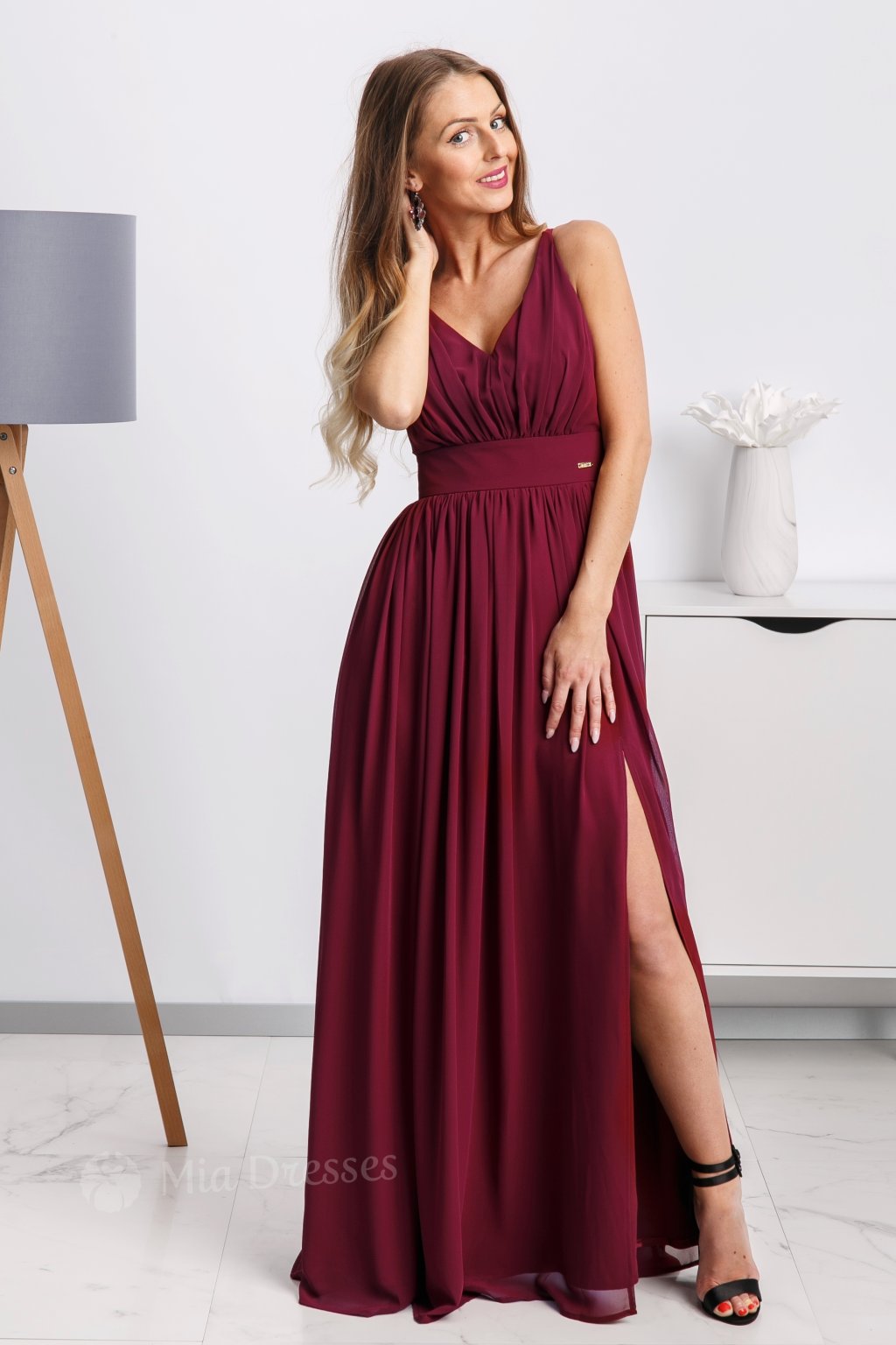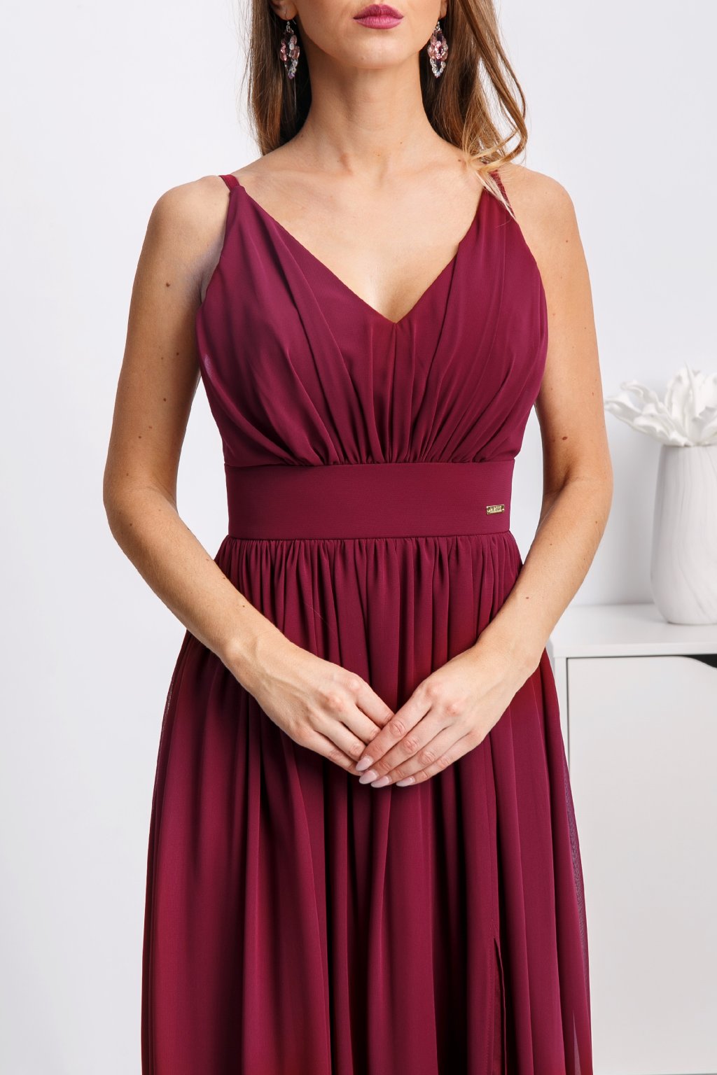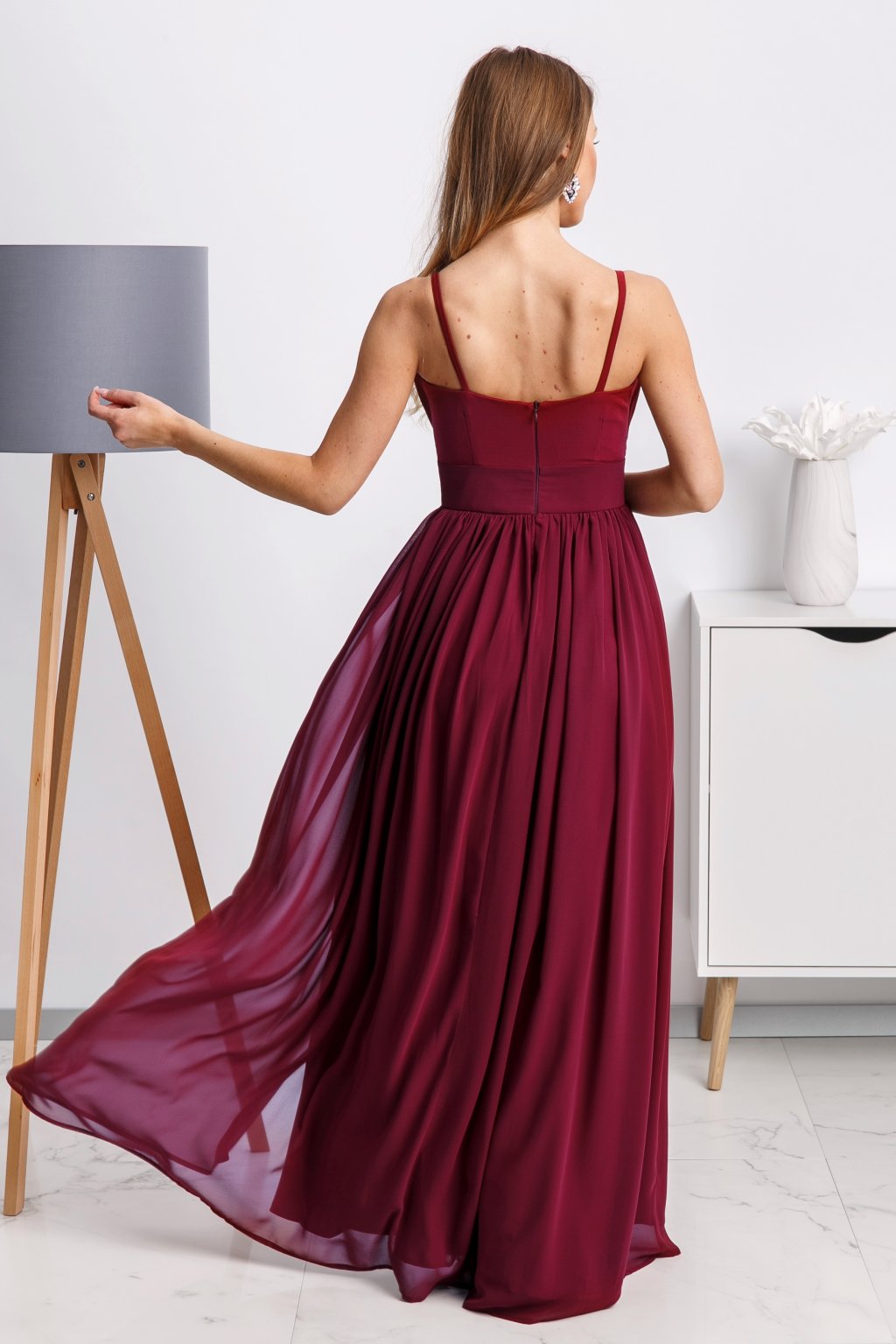 Bordové spoločenské šaty na ramienka