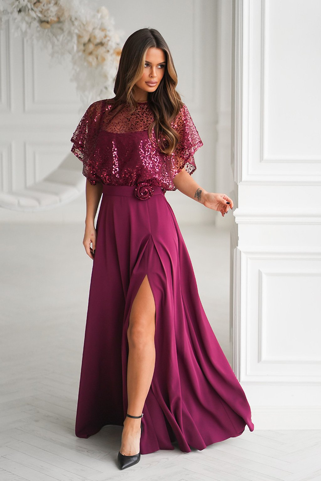 Bordové spoločenské šaty s flitrami