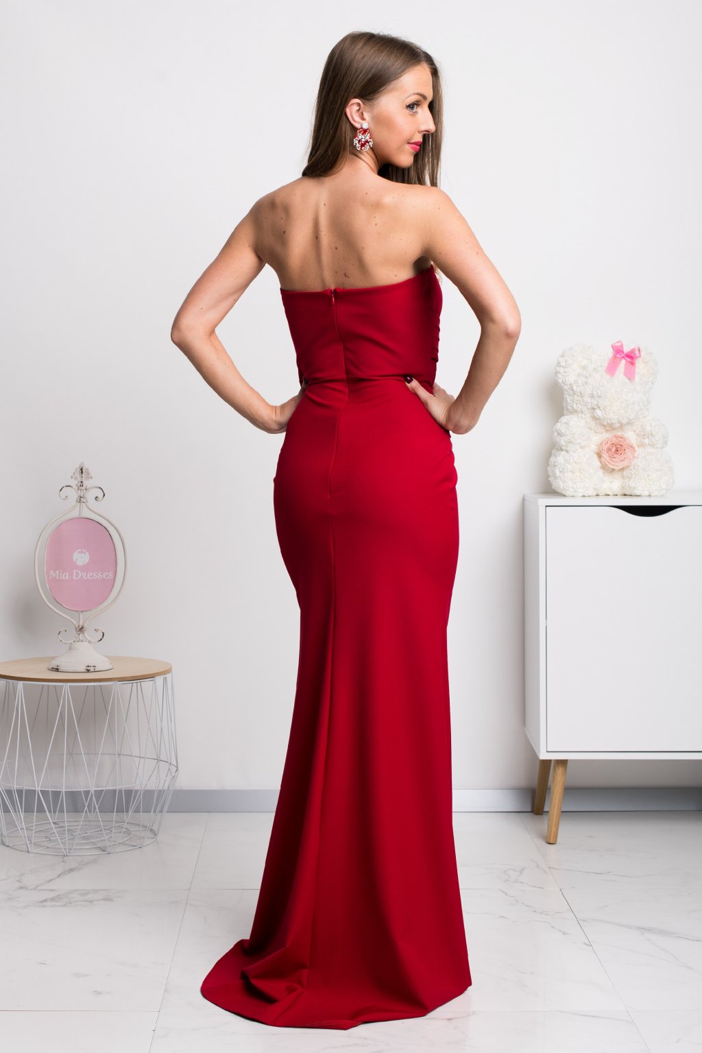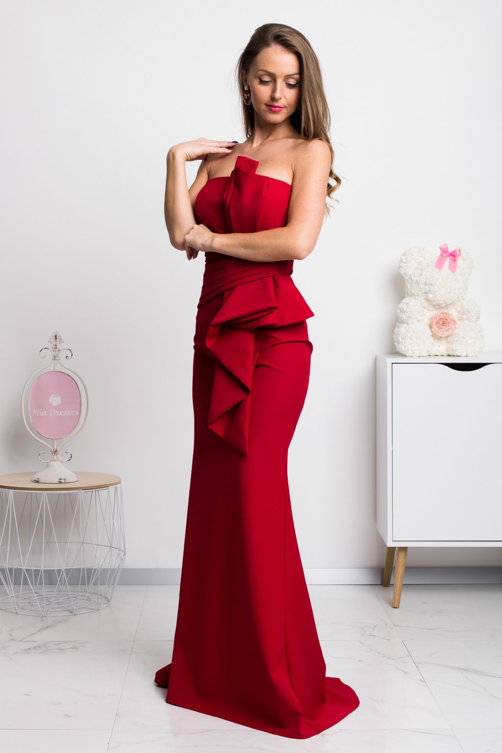 Červená farba je klenotom spomedzi farieb a práve preto budú tieto šaty správnou voľbou. Okrem pútavej farby majú veľmi zaujímavé prevedenie na prednej strane. Materiál je elastický, krásne podčiarkne ženskú líniu. Vzadu sa zapínajú zipsom a na prsiach sú vystužené.
