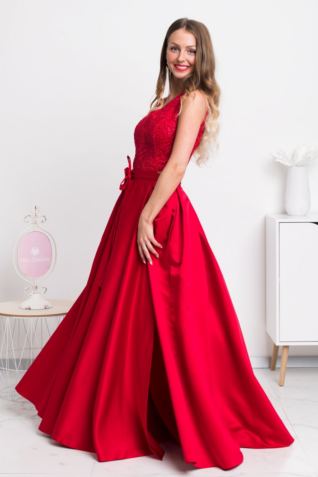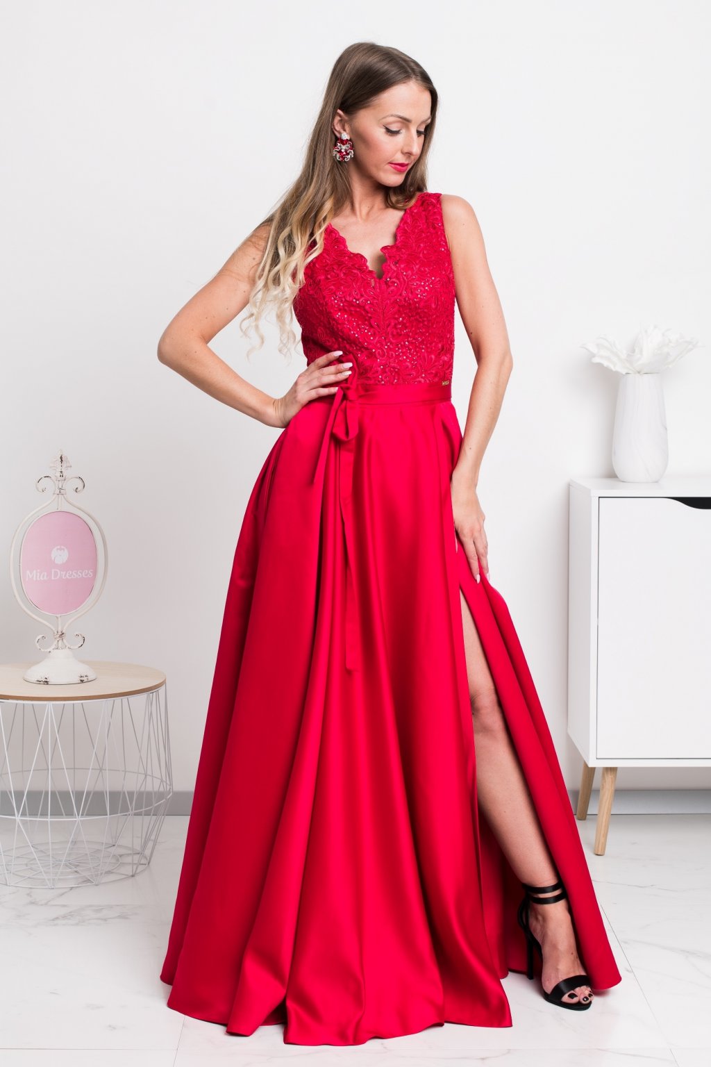 Tieto šaty z vás zaručene urobia pôvabnú a šarmantnú dámu. Vrchná časť šiat je tylová, vyšívaná krásnym motívom a vpredu podšitá nepriehľadnou látkou. Sukňa je naopak saténová, s okúzľujúcim rozparkom a dodáva šatám luxusný šmrnc. Zapnete ich vzadu zipsom.