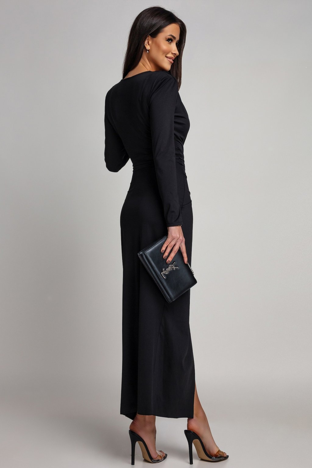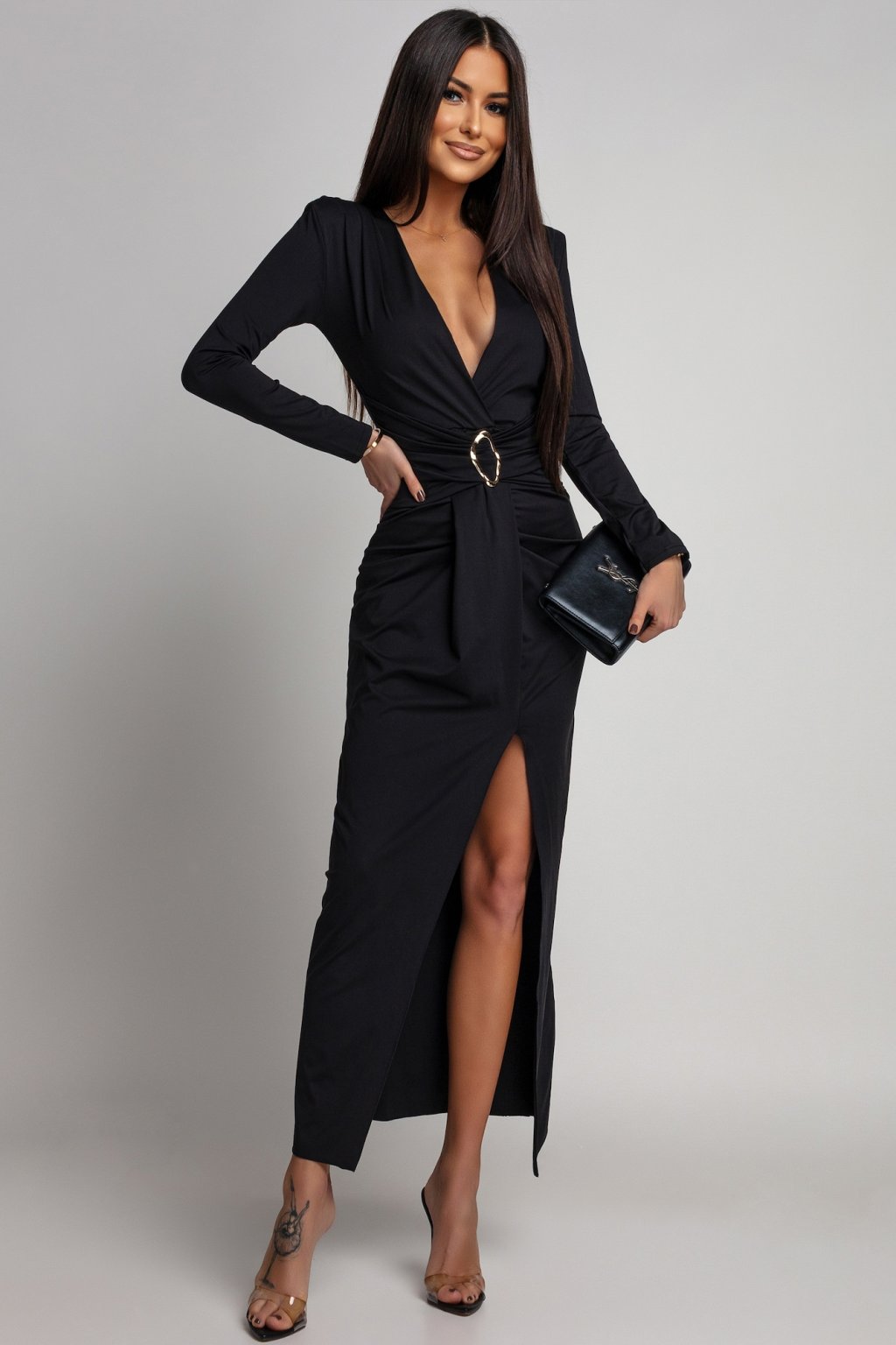 Glamour, ktorý neprehliadnete. Šaty pôsobia rafinovane, no zároveň veľmi žensky. Premyslené detaily a hlboký výstrih vytvárajú luxusný efekt, ktorý krásne pracuje s postavou pri každom kroku. Ideálny model na večerné udalosti, kde chcete zažiariť. Materiál šiat je elastický.