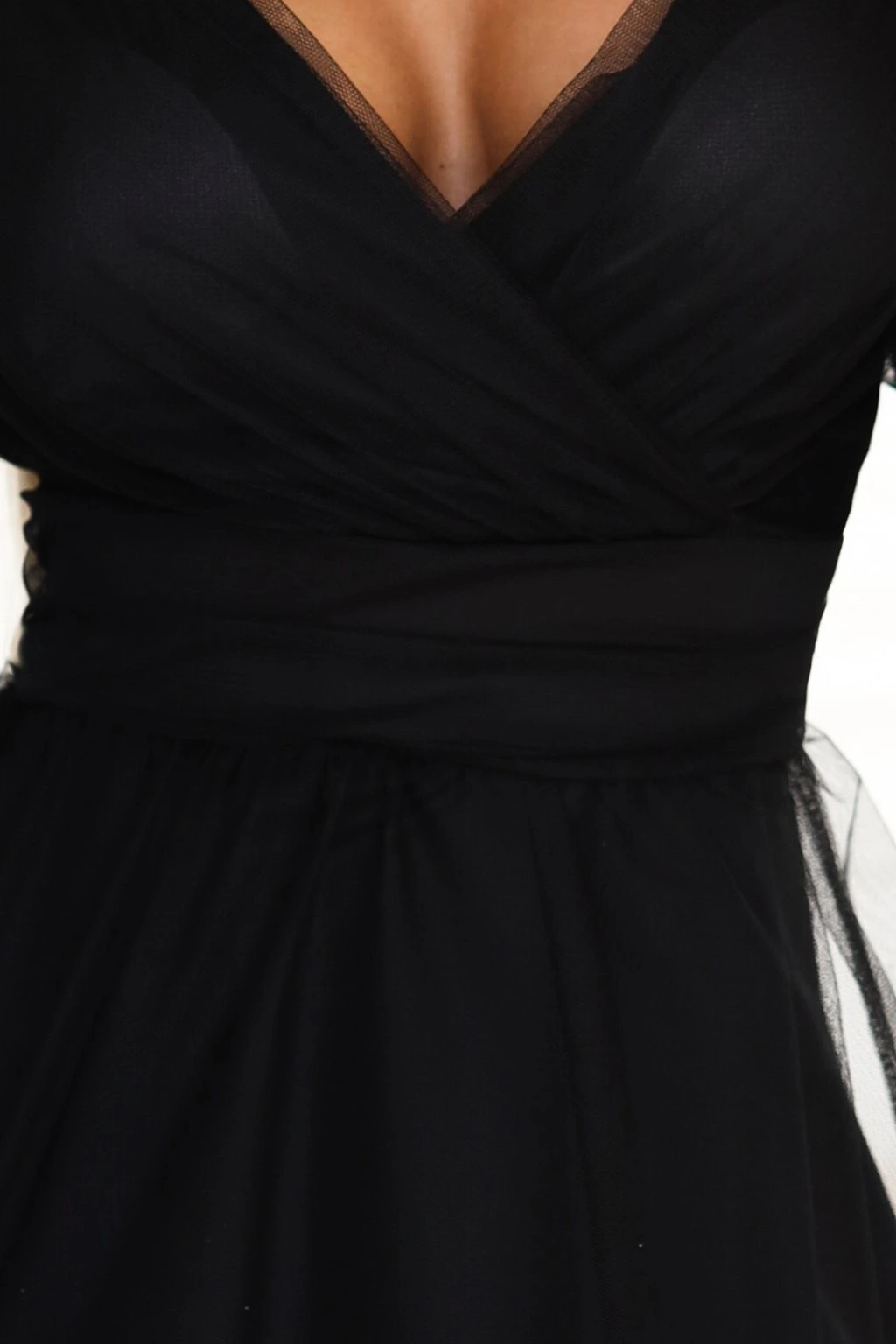Čierne tylové šaty s dlhými rukávmi