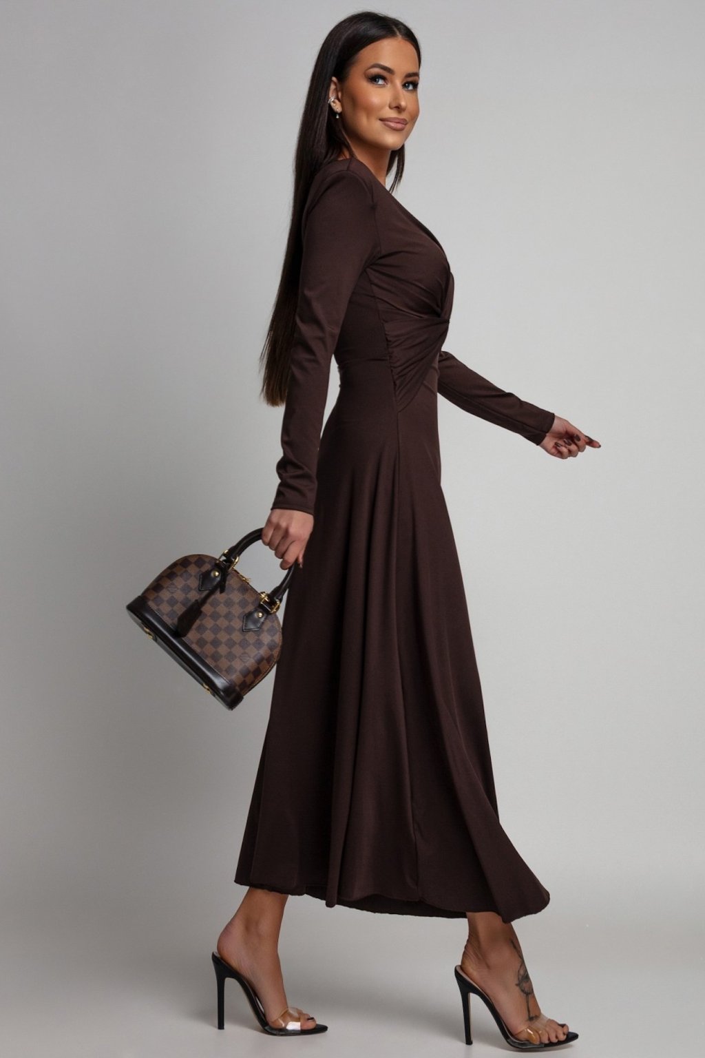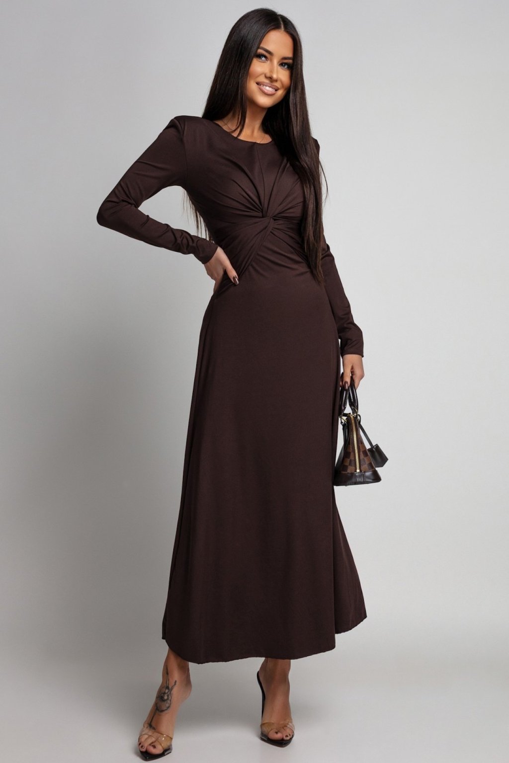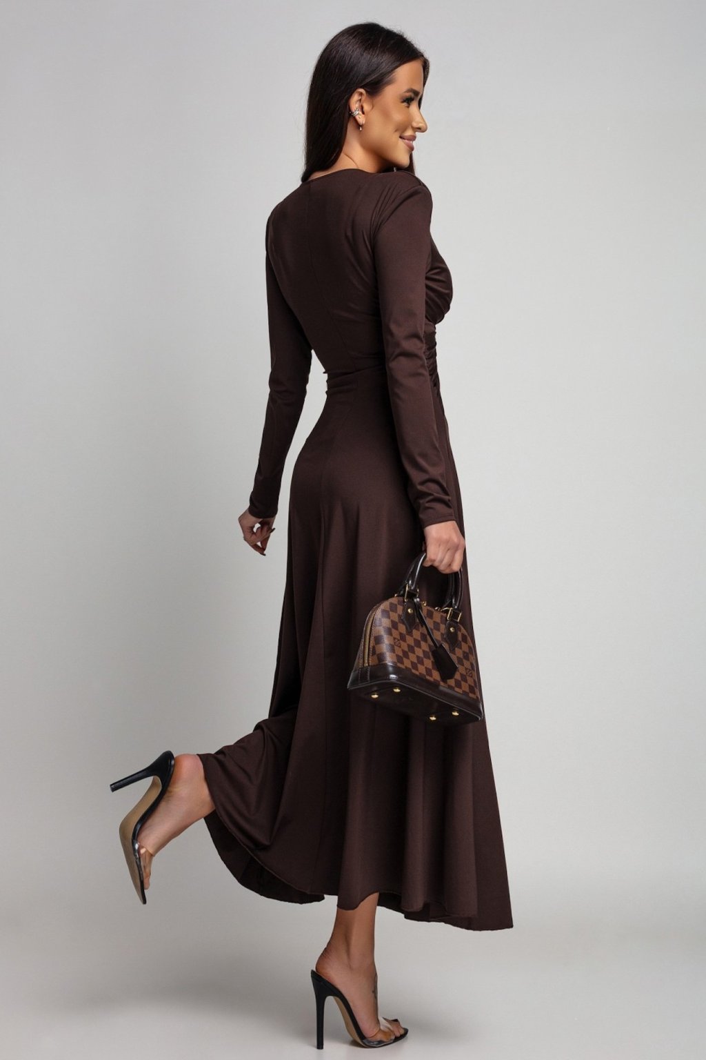 Hnedé spoločenské šaty s áčkovou sukňou