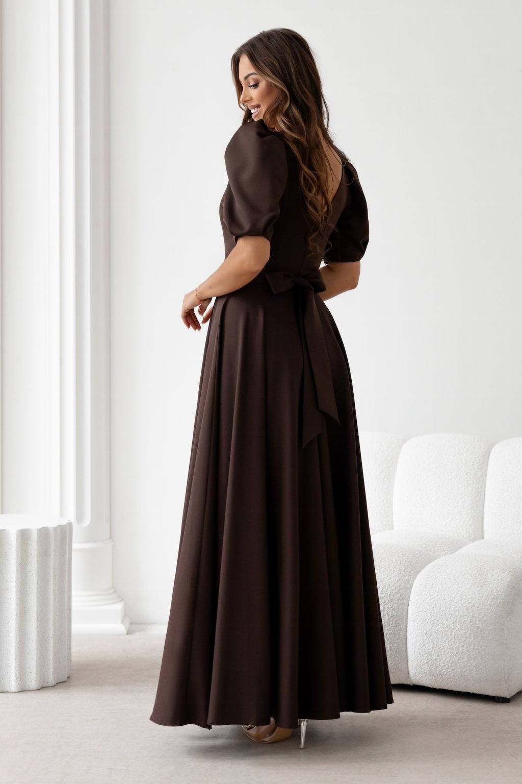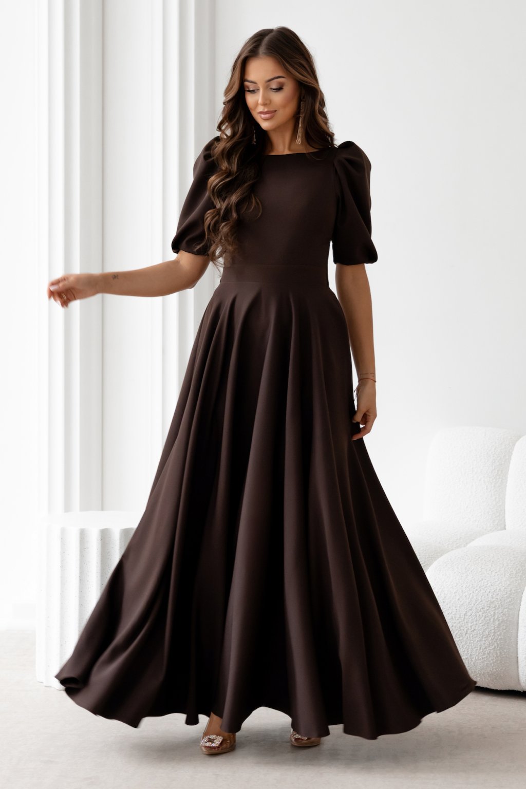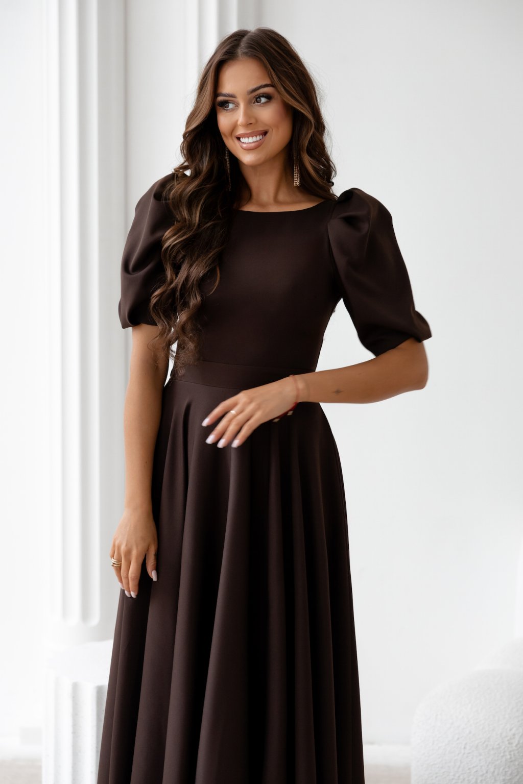 V týchto krásnych šatách vykročíte na spoločenskú udalosť s veľkou dávkou elegancie, šarmu a noblesy. Nadýchané rukávy a výstrih na chrbte dopĺňajú šatám romantický nádych. Vzadu sa zapínajú zipsom.