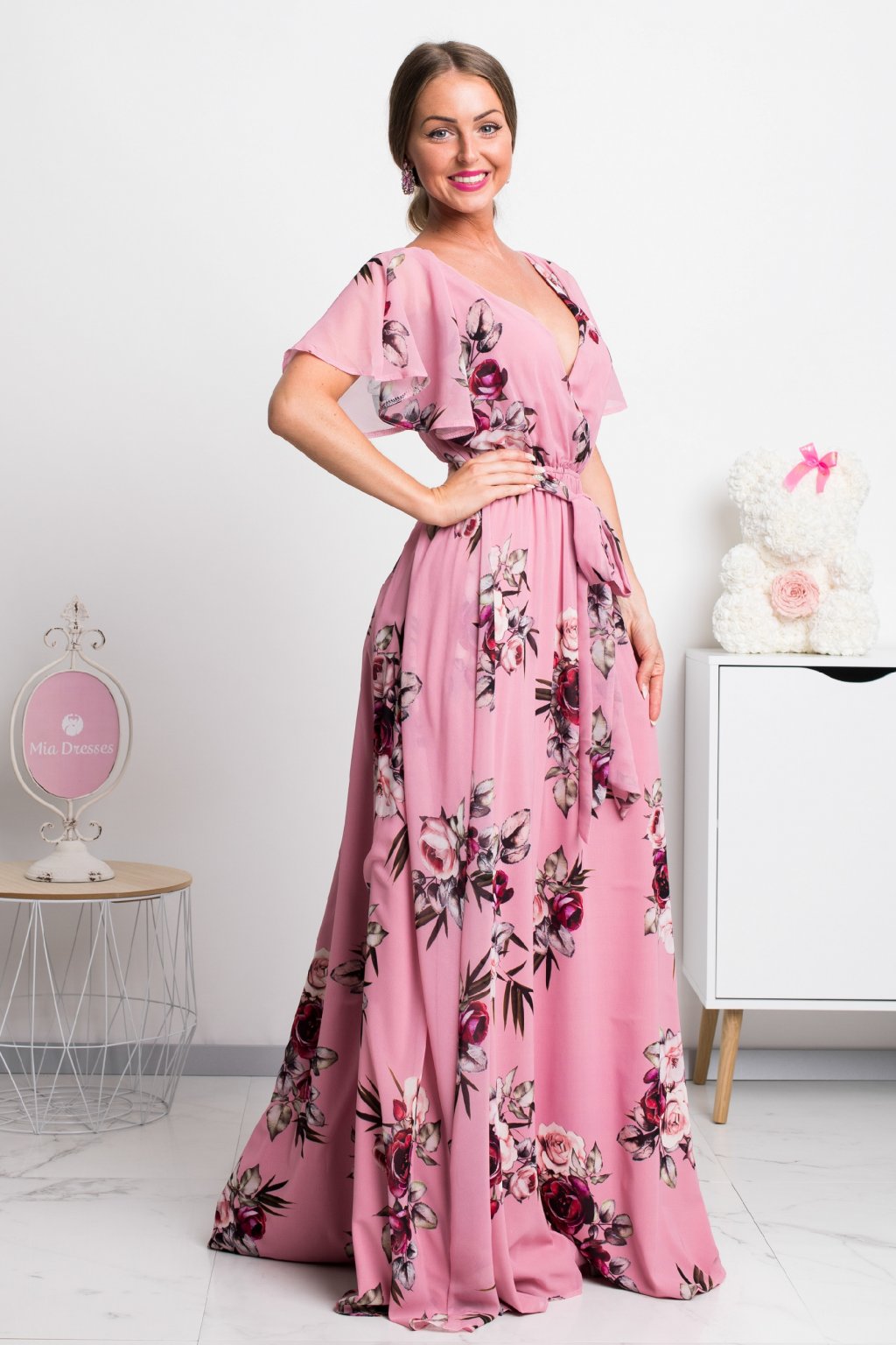 Romantické šifónové šaty s kvetinkami z vás urobia kráľovnú tohto leta. Šaty sú podšité, v oblasti pása sa viažu a zaujímavým prvkom sú krátke volánové rukávy.