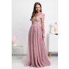 Ružové spoločenské šaty s krajkou a tylovou sukňou
