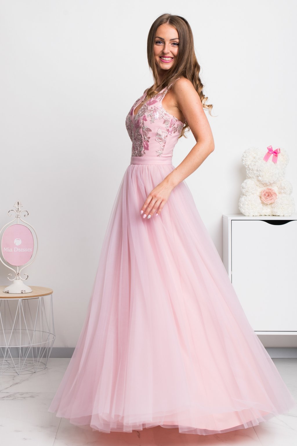 Najkrajšie šatičky pre princezničky. Sladký odtieň ružovej, nadýchaná tylová sukňa a romantická krajka – áno, v týchto prenádherných šatách budete nepochybne za princeznú. Suknička je podšitá nepriehľadnou látkou, vzadu sa zapínajú zipsom a ramienka sú nastaviteľné.