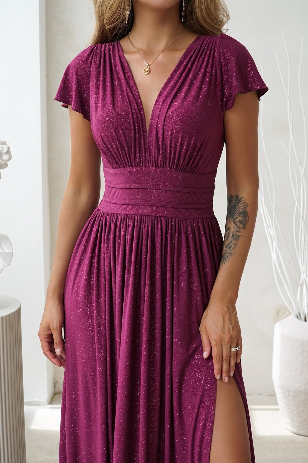 Ak ste milovníčkami všetkého, čo sa trbliece, tieto šaty sú pre vás ako stvorené. Vďaka vysokému rozparku do miestnosti vstúpite sexi krokom a nepochybne rozžiarite všetko naokolo. Materiál šiat je mierne elastický a vzadu sa šaty zapínajú zipsom. Trblietky nie sú všité do materiálu, prirodzene opadávajú.