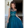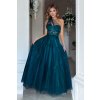 Smaragdové trblietavé šaty s korzetom a tylovou sukňou