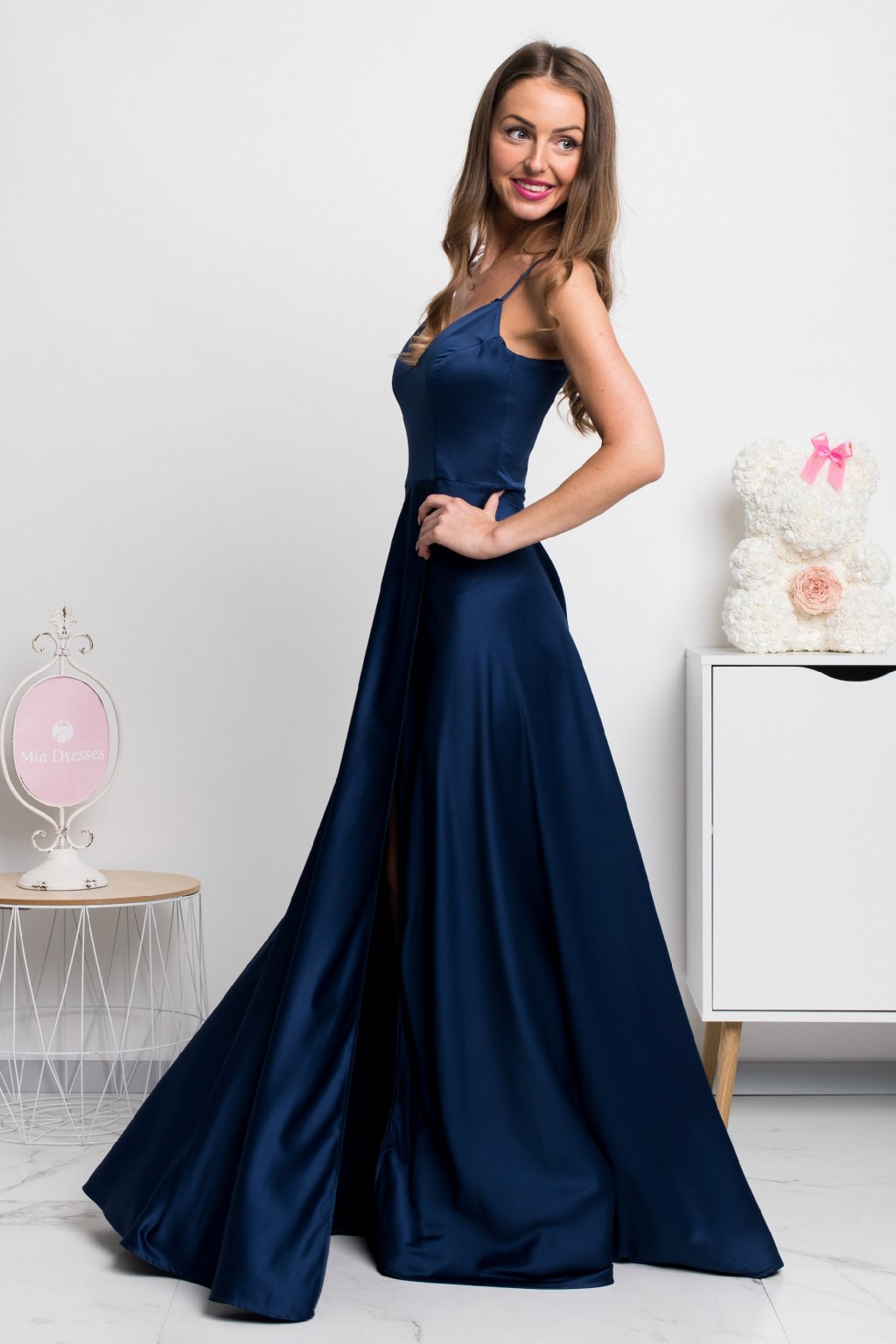 Satén je zárukou podmanivého vzhľadu s veľkou dávkou elegancie a noblesy a tieto saténové šaty v tajuplnej farbe nie sú výnimkou. K dokonalému vzhľadu prispeje vysoký rozparok. Ramienka sú nastaviteľné a vzadu sa šaty zapínajú zipsom.