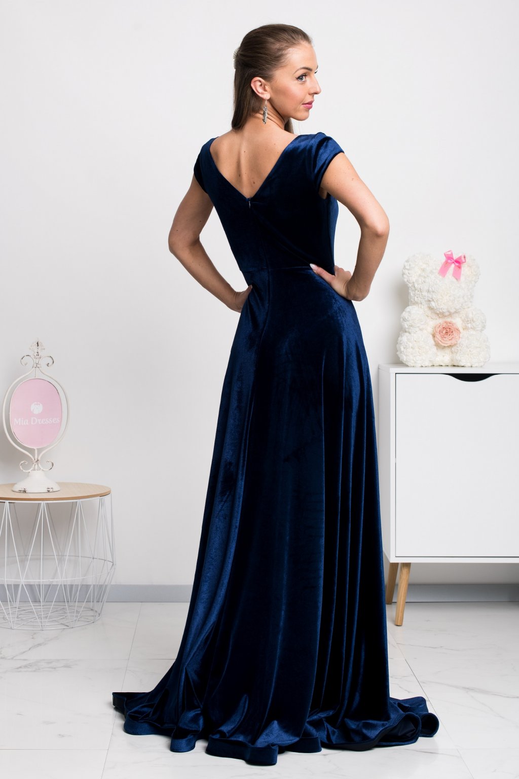 Z týchto šiat priam vyžaruje noblesa a pôvab vďaka krásnemu zamatovému materiálu, ktorý aj tento jednoduchý strih zmení na očarujúci. Šaty sú na prsiach vystužené a vzadu sa zapínajú zipsom.
