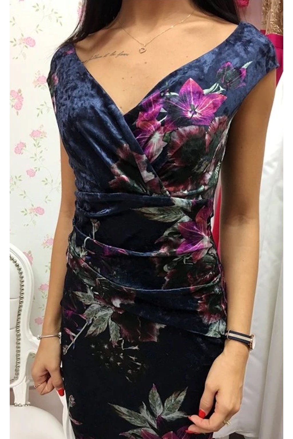 Hľadáte naozaj originálny kúsok na tohtoročnú sezónu? Tadá, našli ste! Šaty zo zamatu, ozdobené kvetmi pôsobia netradične, no zároveň honosne. Sú obtiahnuté, v hornej časti mierne nariasené, cez prsia podšité a vzadu sa zapínajú na zips.