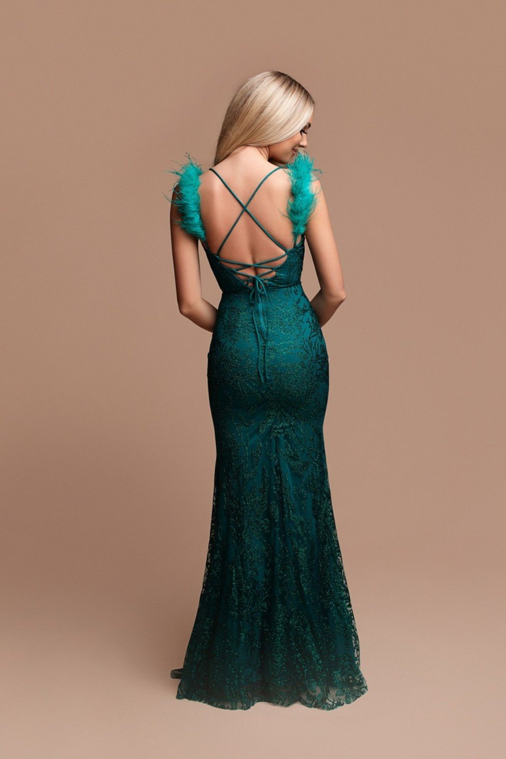 Zelené flitrované šaty s pierkami