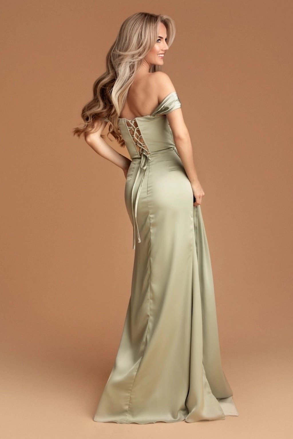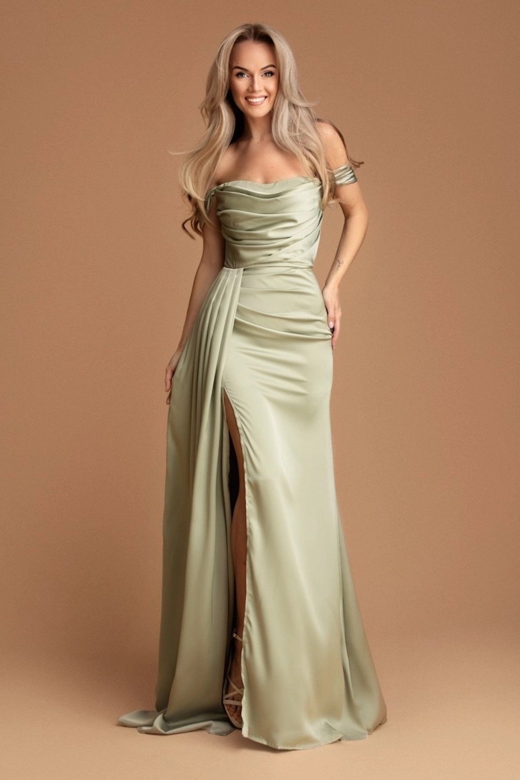 Zelené priliehavé šaty spustené na ramená