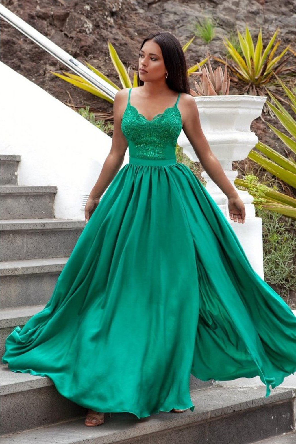 Priliehavý vrch zdobený krajkou a flitrami a dlhá padavá sukňa z ľahkého saténu s rozparkom dotvárajú tieto šaty k absolútnej dokonalosti. Budú vaše na ples, svadbu alebo oslavu? Vieme zaručiť jediné, že budete za hviezdu! Zapnete ich zadným zipsom.