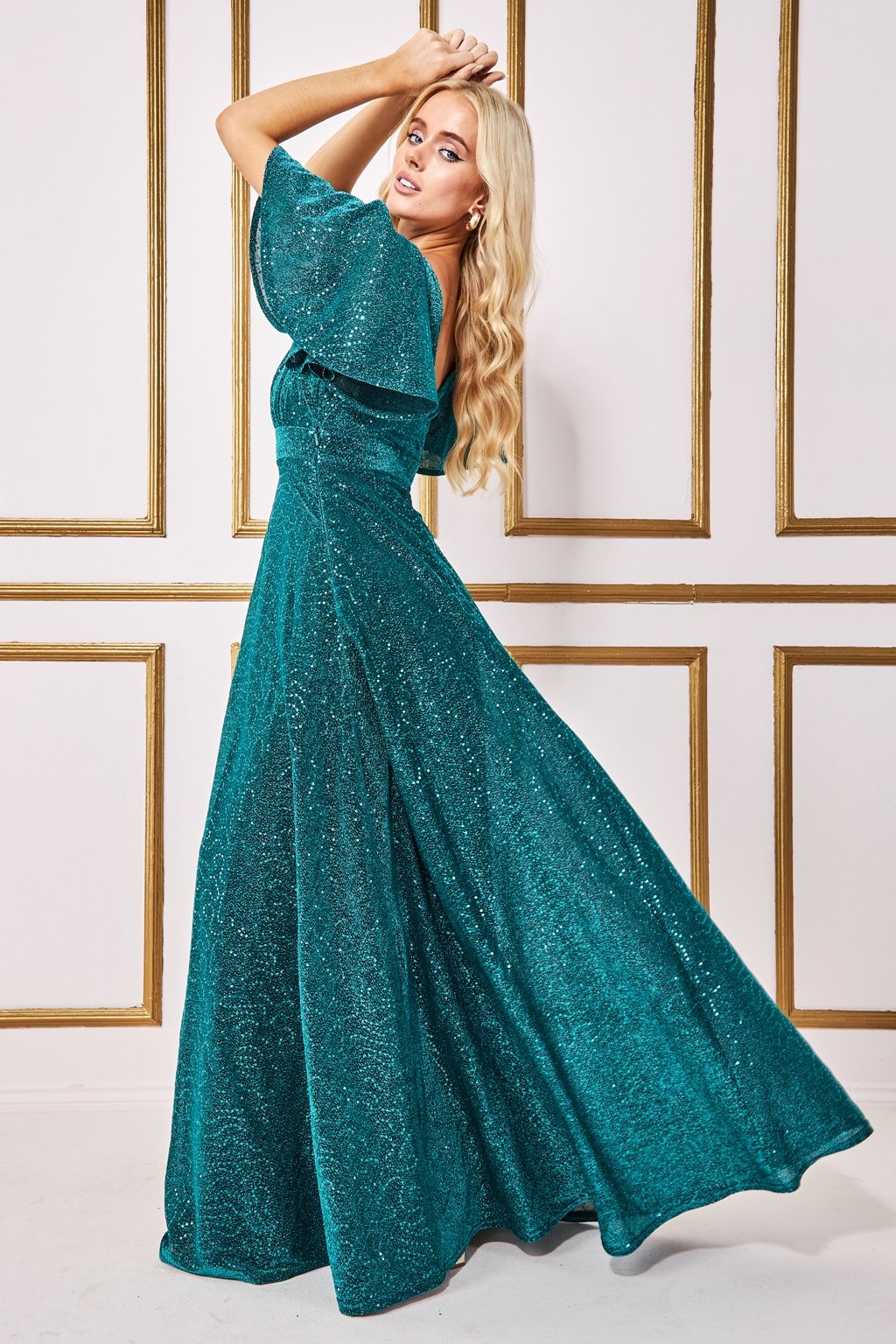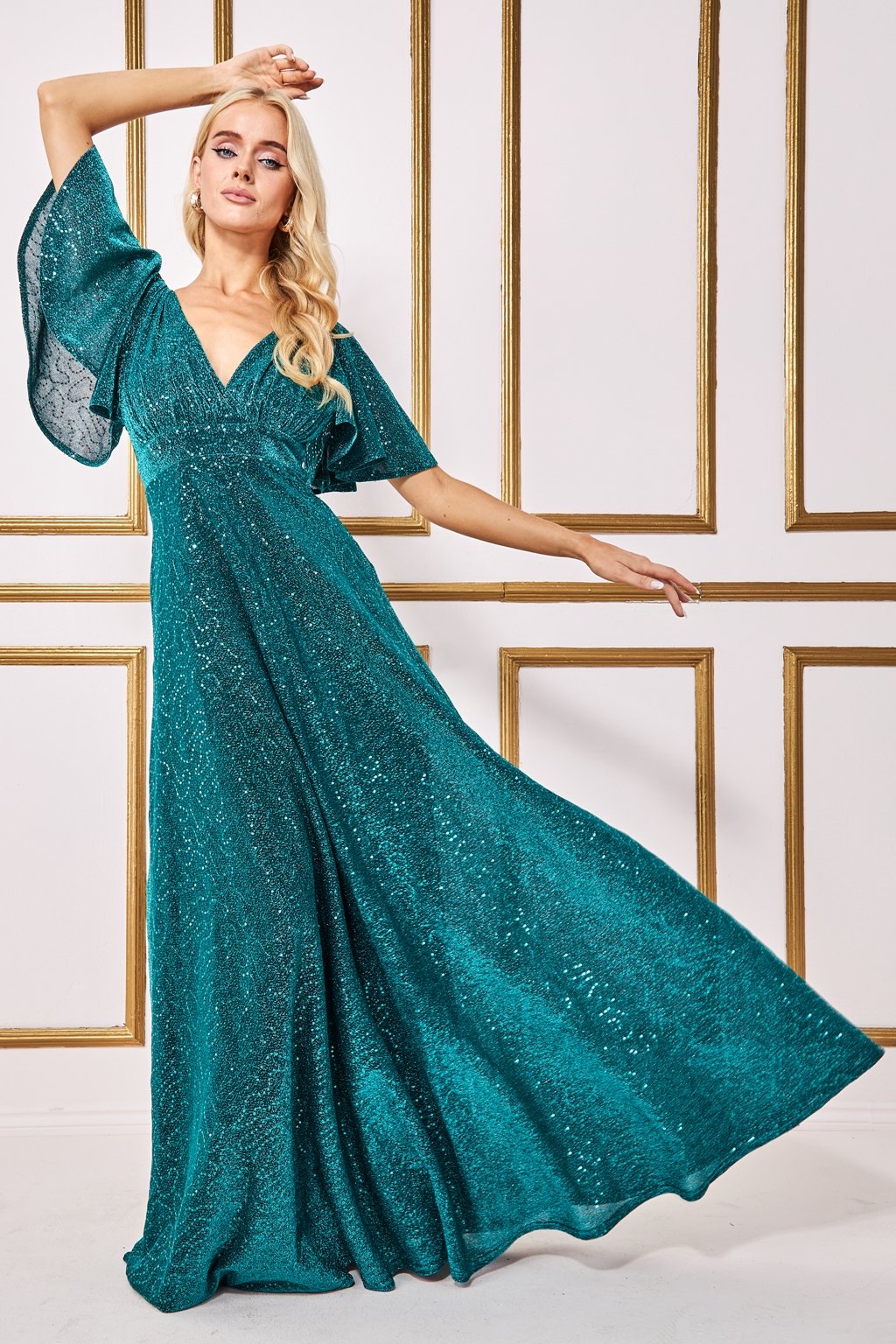 Zelené trblietavé šaty s voľnými rukávmi