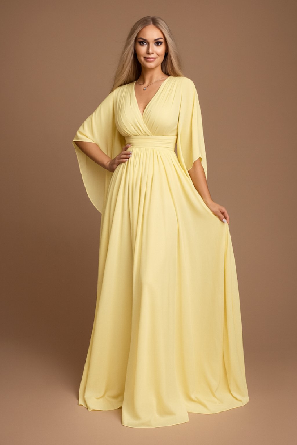 Romantické šifónové šaty z vás vykúzlia elegantnú dámu s veľkou dávkou noblesy a šarmu. Šaty sú na prsiach vystužené a vzadu sa zapínajú zipsom.