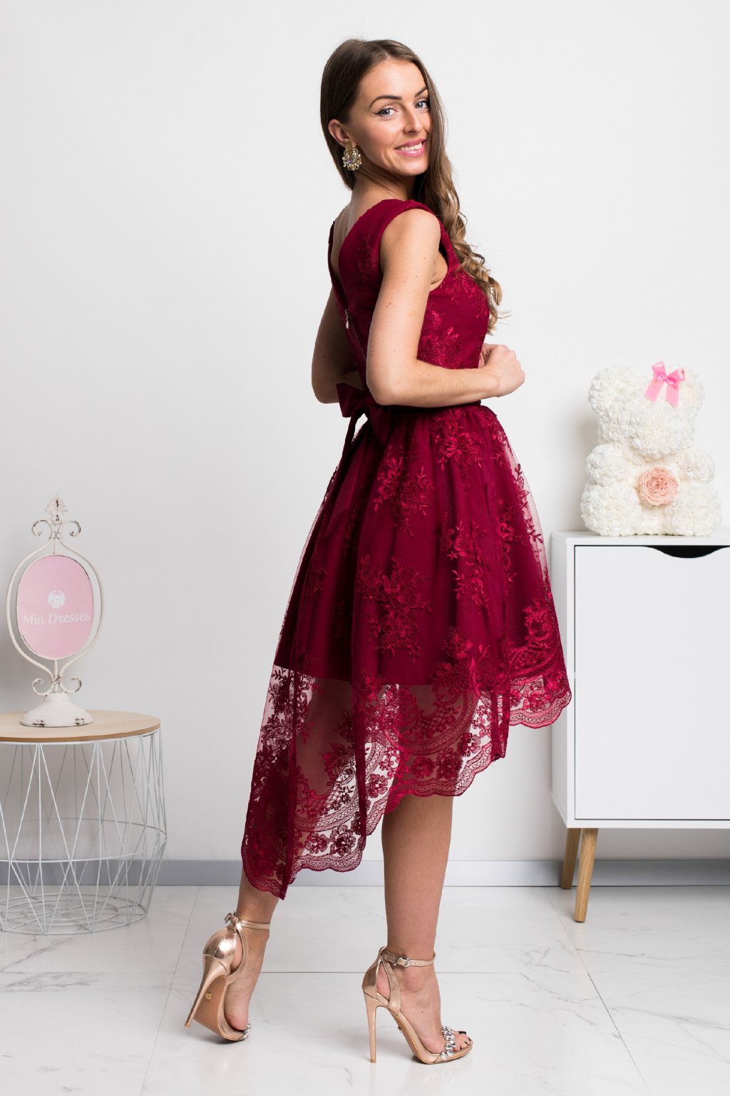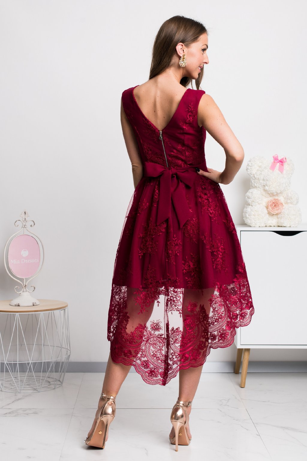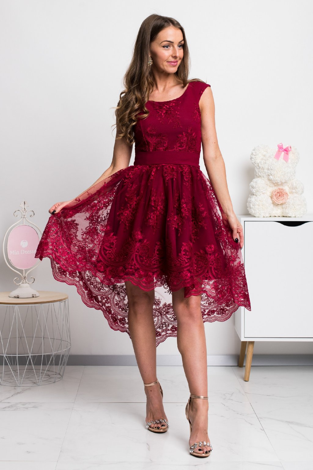 Tieto šaty vyrazia dych každému už pri prvom krôčiku do miestnosti. Šaty sú celé posiate elegantnou krajkou, v zadnej časti šiat sa krajka tiahne až pod kolená a tento prvok dodáva šatám okúzľujúci, luxusný nádych. Materiál šiat nie je elastický a vzadu sa zapínajú zipsom.