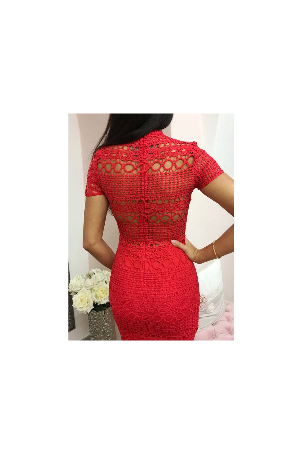 Krajkové mini šaty v sýtej červenej farbe sú dokonalé na romantickú večeru v príjemnom letnom období. Vzadu sa zapínajú zipsom.