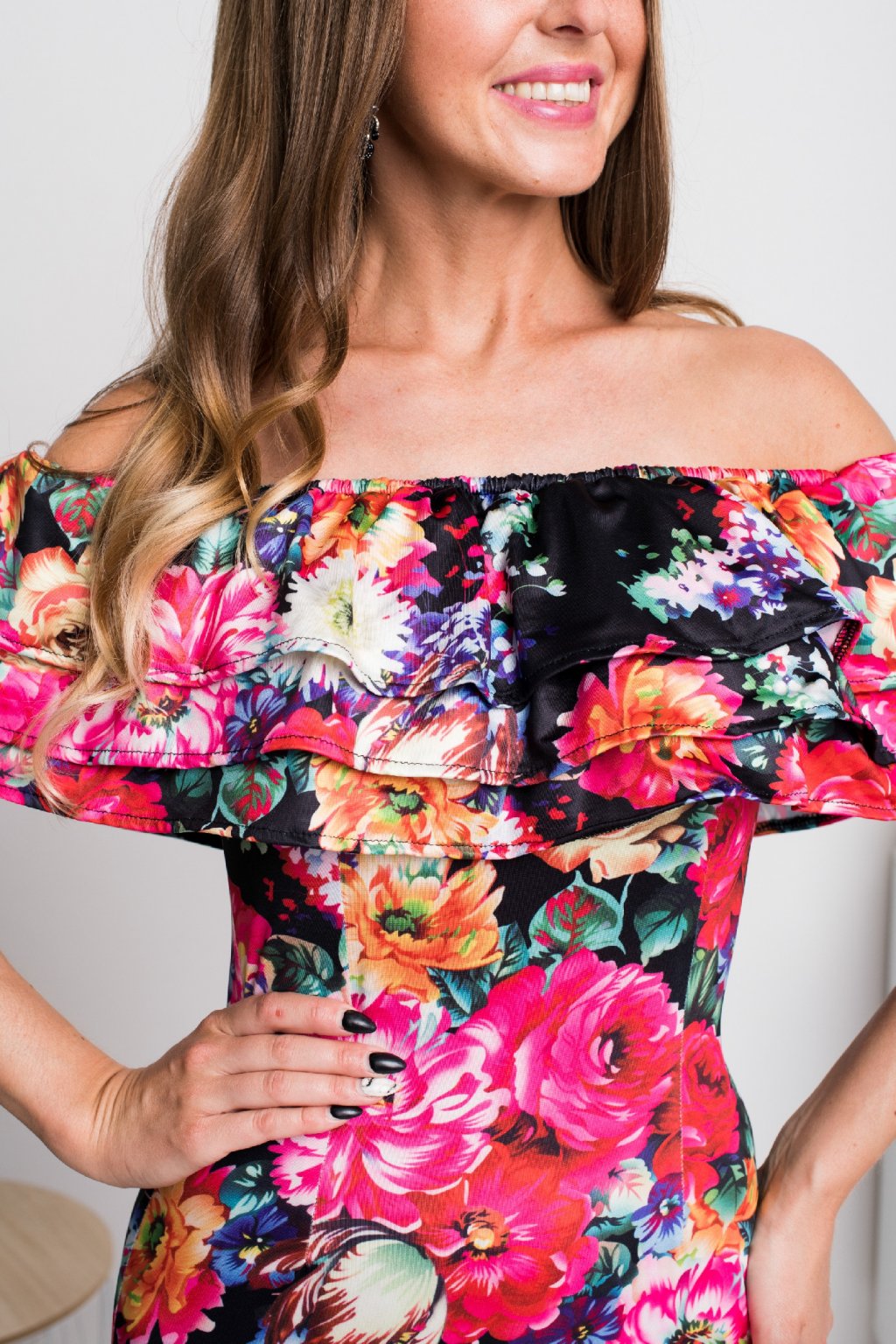 Letných šatičiek nikdy nie je dosť a týmto romantickým kráskam je ťažké odolať. Kvetinový vzor, odhalené ramená, nežné volániky a priliehavý strih, ktorý podčiarkne ženské línie. V týchto zaručene pritiahnete každé očko. Materiál je elastický a na bočnej strane sa zapínajú zipsom.