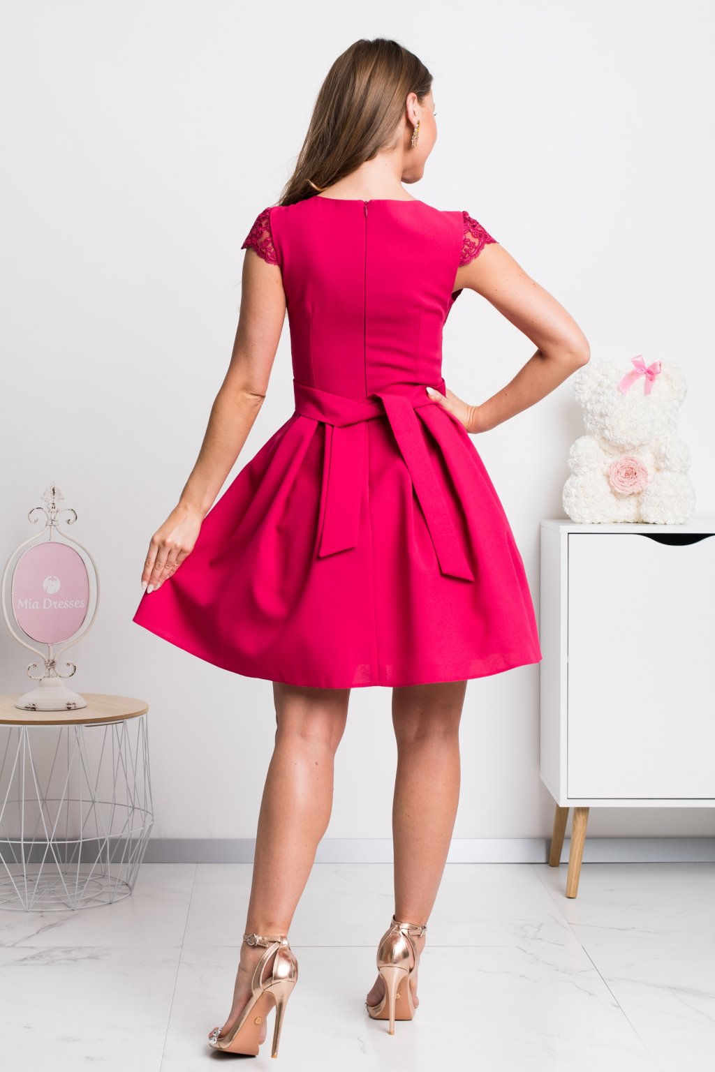 Malinová farba, krajka, áčková suknička – v týchto zaručene zažiariš! Sukňa si krásne drží tvar vďaka spodničke, na ktorej je našitý tyl. Precízne prepracovaná krajka dodáva šatám luxusný nádych. Materiál šiat nie je elastický, vzadu sa zapínajú zipsom. Jednoducho dokonalé šaty pre milovníčky neprehliadnuteľných kúskov, ktorým je len ťažko odolať!