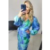 Modro-zelené kvetinové midi šaty s balónovými rukávmi