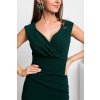 Priliehavé midi šaty z pohodlného elastického materiálu zdobí výstrih v tvare písmena V. Ten vám rozžiari krásu ramien a kľúčnych kostí. V oblasti bruška je nazbieraná látka, ktorá schová to, čo je treba. Šaty sú cez prsia podšité a zapínajú sa na zadnej strane.