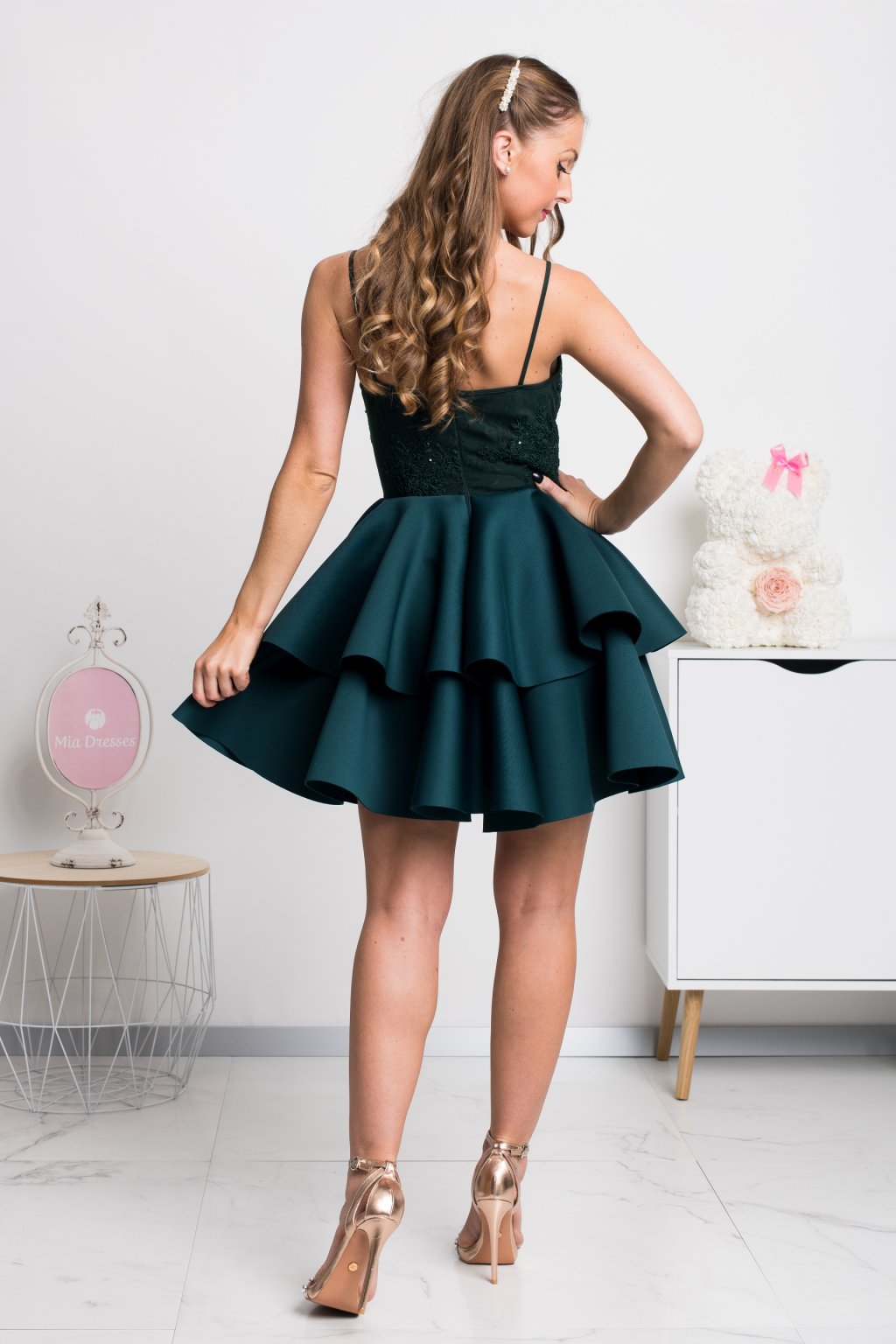 Smaragdové spoločenské mini šaty na ramienka