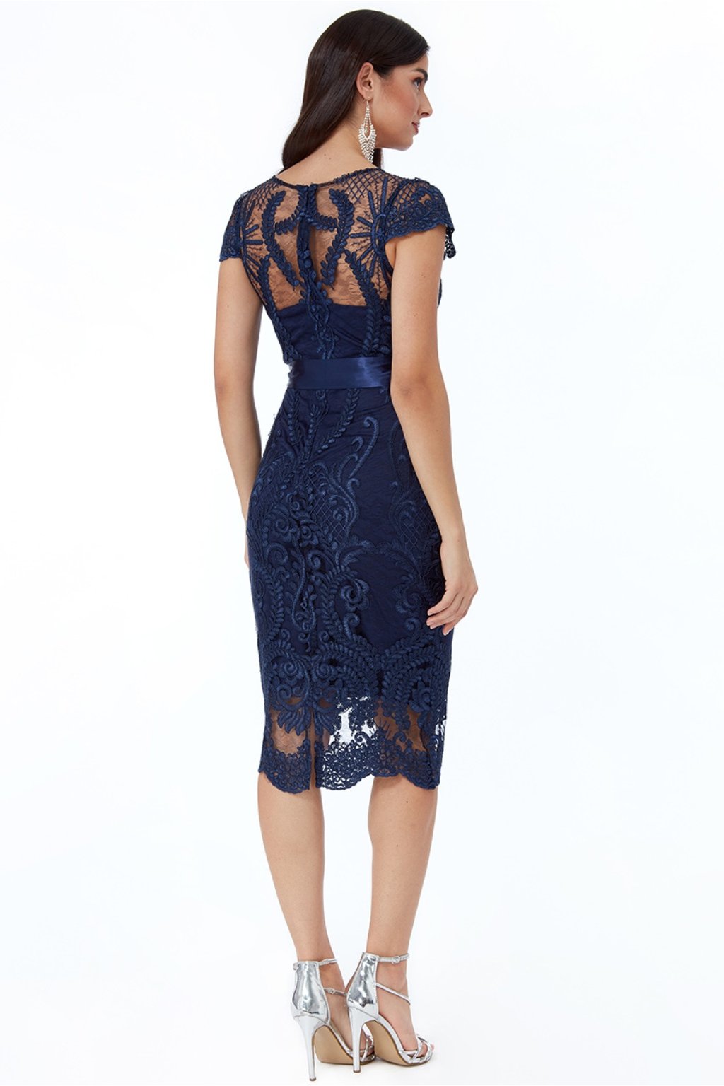 Tieto krásne krajkované šaty si zaručene vyslúžia pozornosť na spoločenskej udalosti a vy budete pôsobiť ako elegantná dáma s noblesou a šarmom. Priliehavý strih pôsobí vkusne a stuha v páse dotiahne vaše ženské krivky k dokonalosti. Materiál je mierne elastický a vzadu sa zapínajú zipsom