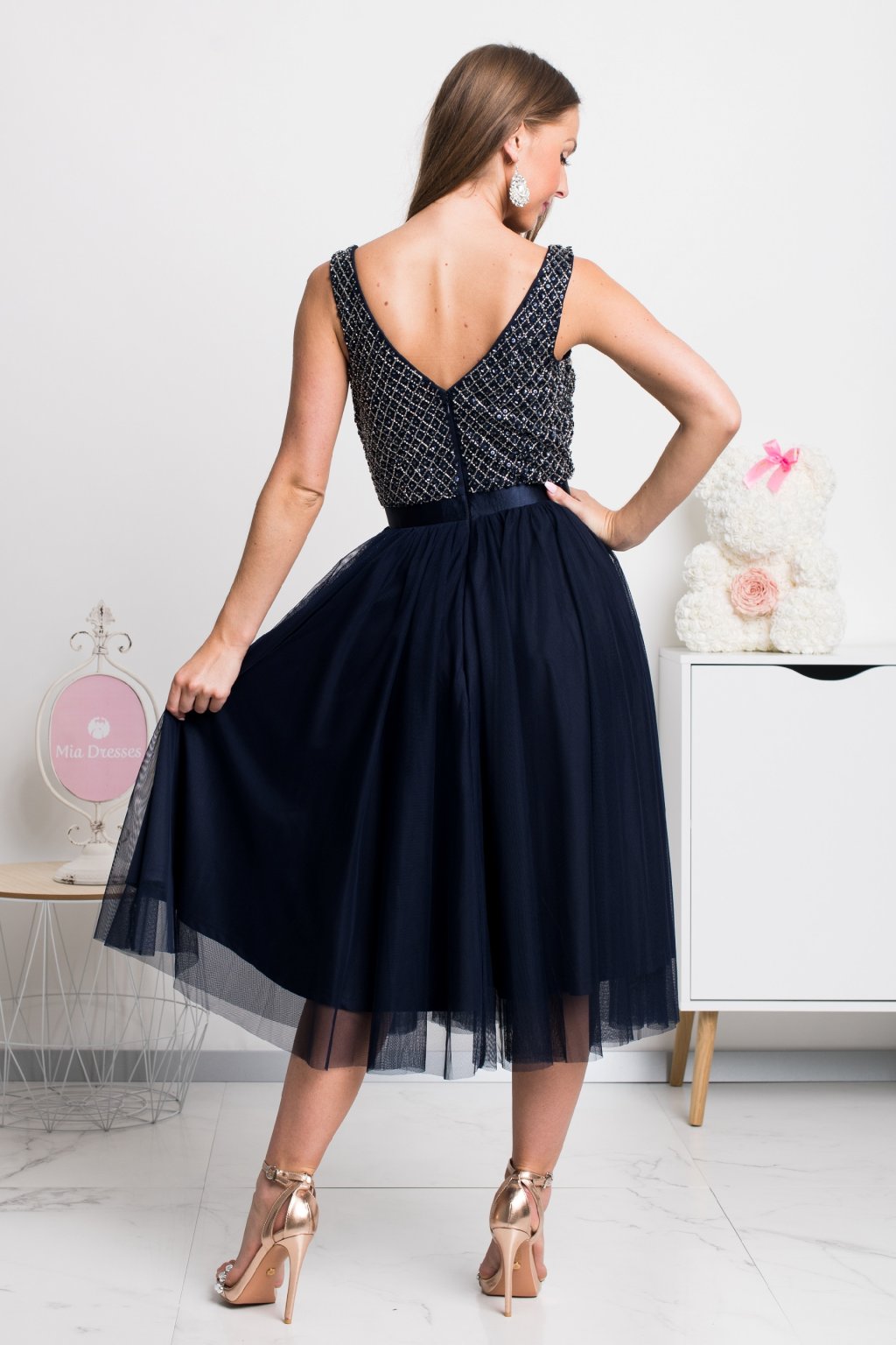 Stať sa aspoň na jednu noc princeznou? V týchto šatách nepochybne! Krásna tylová suknička a decentné zdobenie korálikmi vzbudzujú rozprávkový, romantický dojem. Vzadu sa zapínajú zipsom a vrchná časť šiat je mierne elastická.