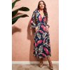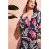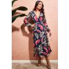 Tmavomodré zavinovacie midi šaty s kvetinami