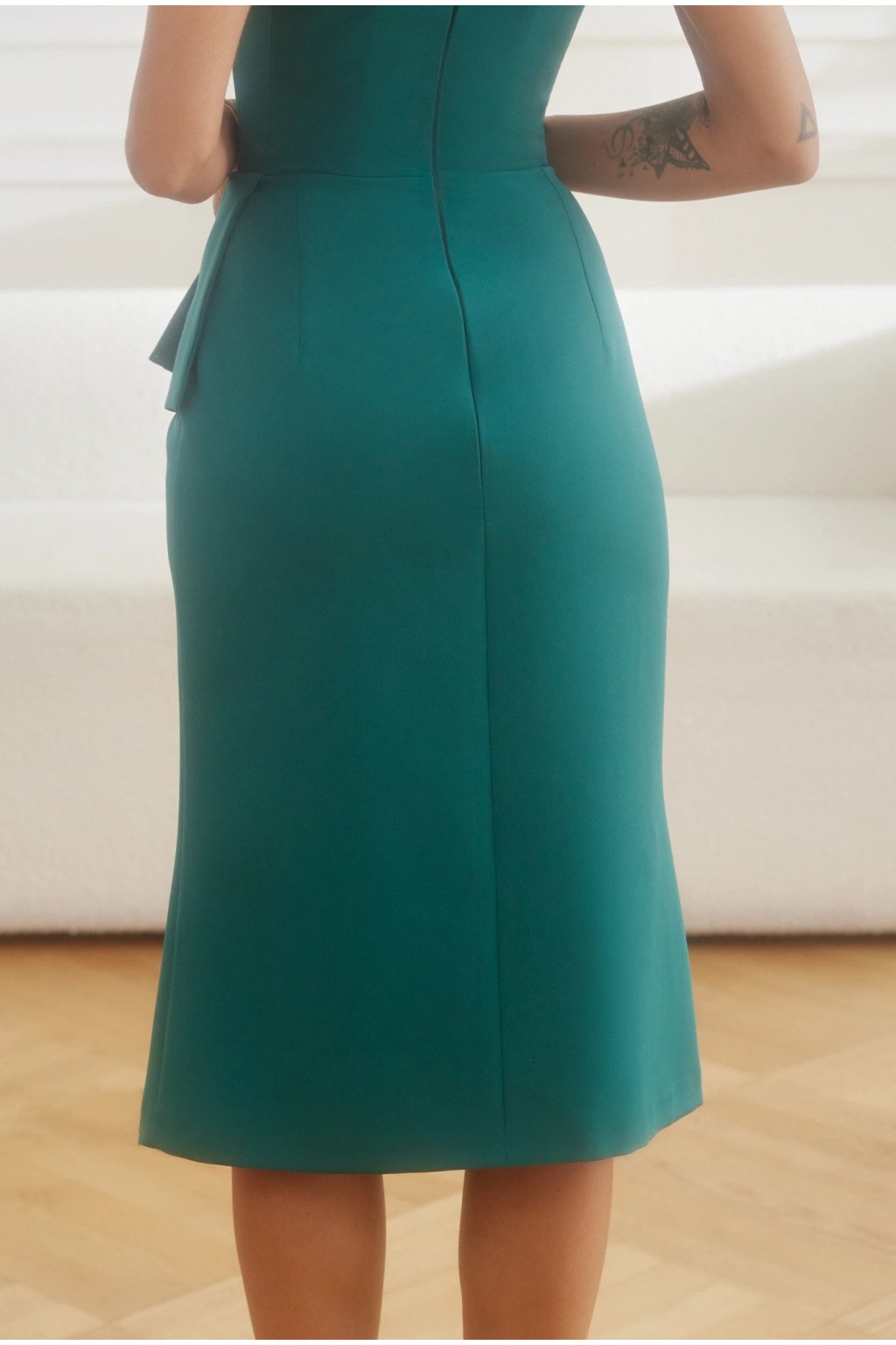 Zelené priliehavé midi šaty spustené na ramená