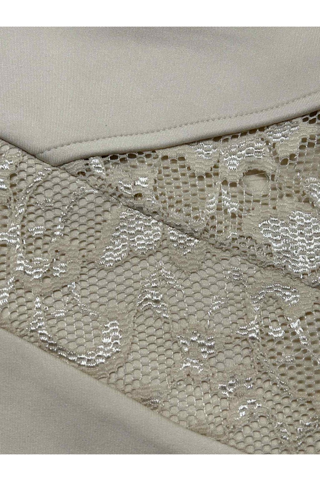 Poškodený tovar - Béžové priliehavé midi šaty s čipkou