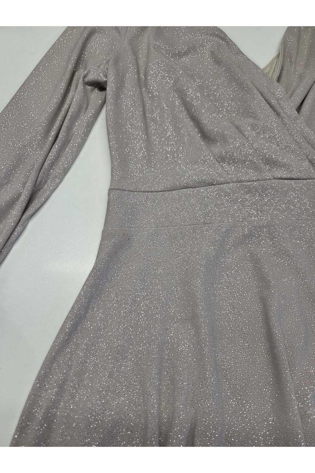Poškodený tovar - Béžové trblietavé šaty s dlhými rukávmi