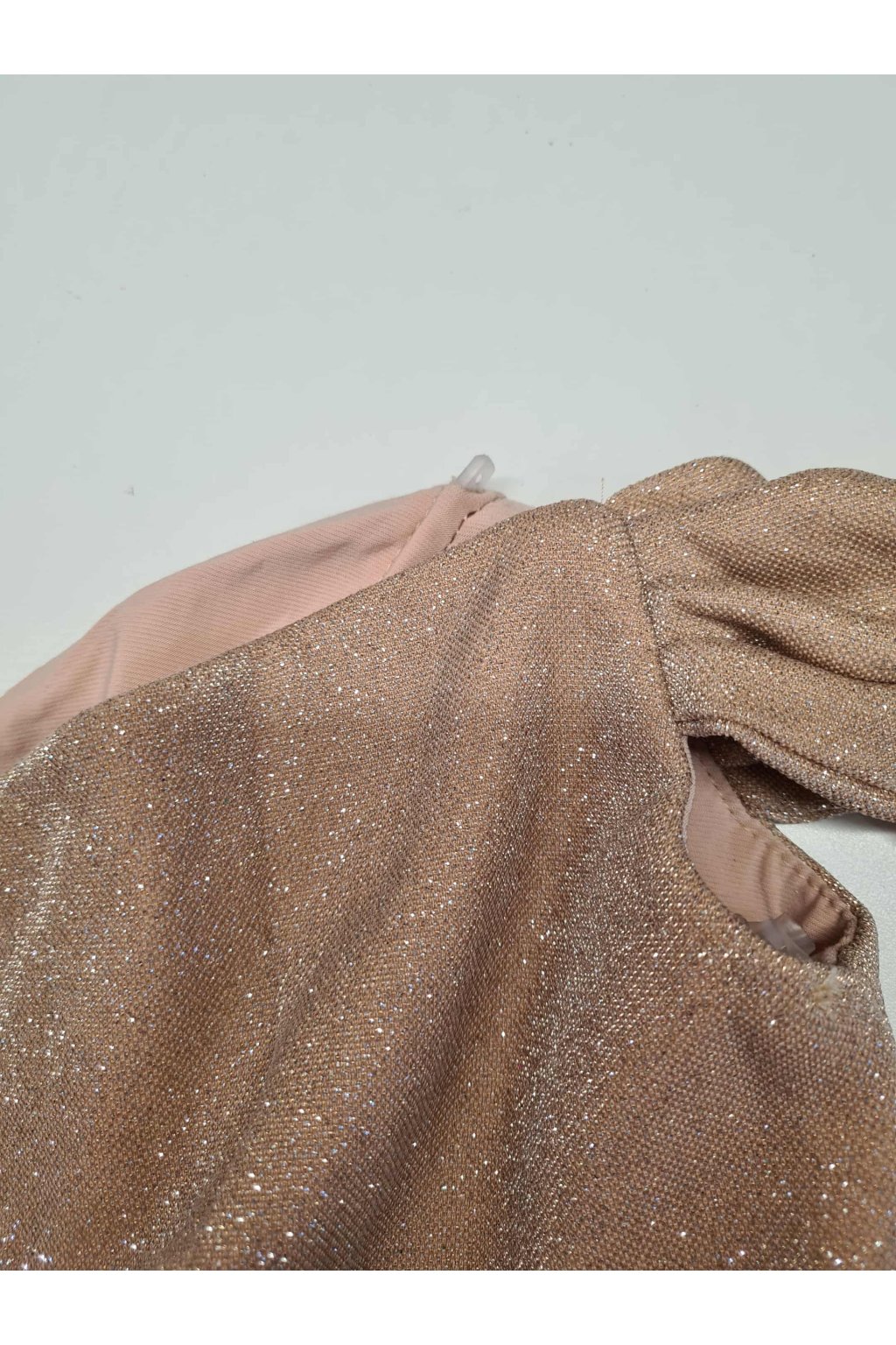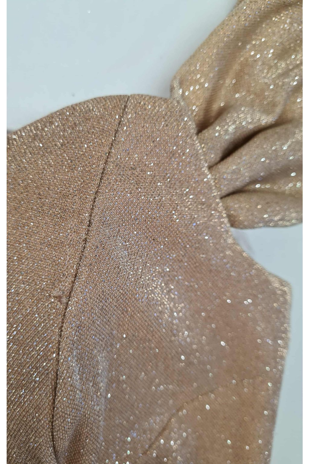 Poškodený tovar - Béžové trblietavé šaty spustené na ramená