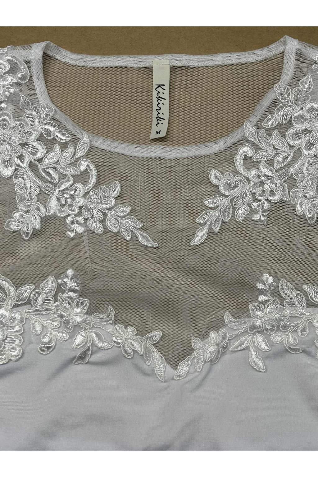 Poškodený tovar - Biele body s tylom a vyšívanými kvetinkami