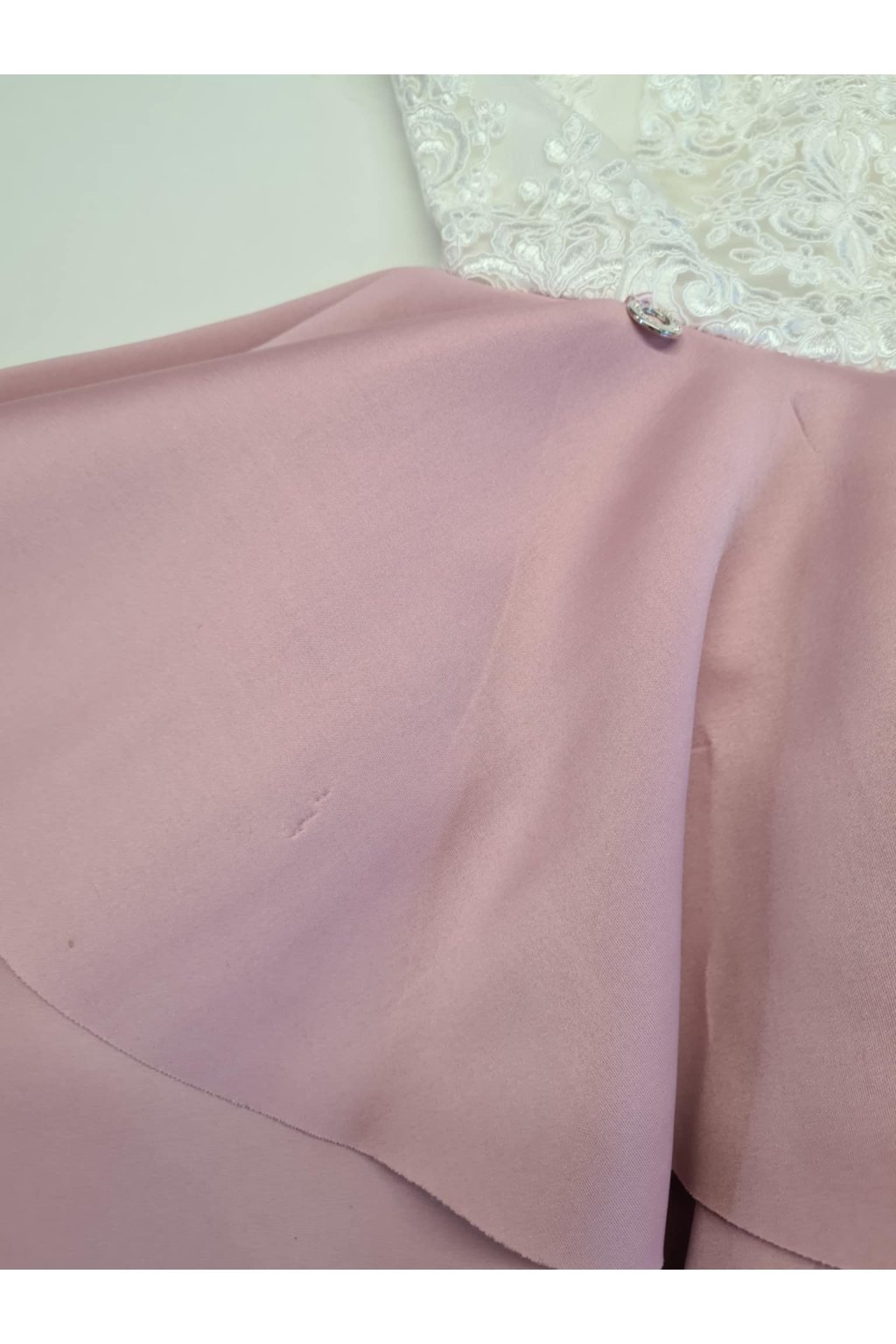Poškodený tovar - Bielo-ružové spoločenské mini šaty s krajkou