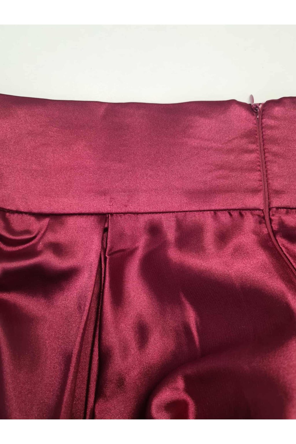 Poškodený tovar - Bordová saténová sukňa s rozparkom