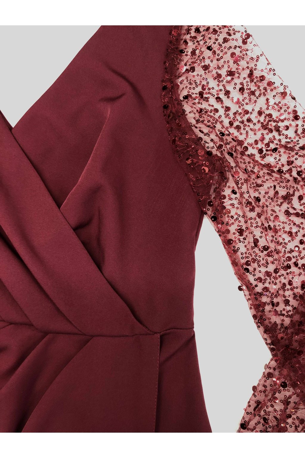 Poškodený tovar - Bordové spoločenské šaty s trblietavými rukávmi