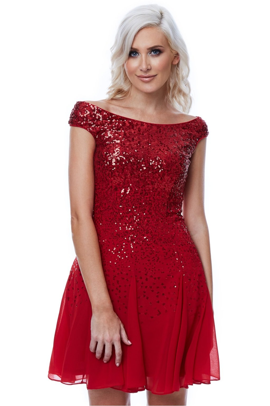 Poškodený tovar - Červené krátke flitrované šaty