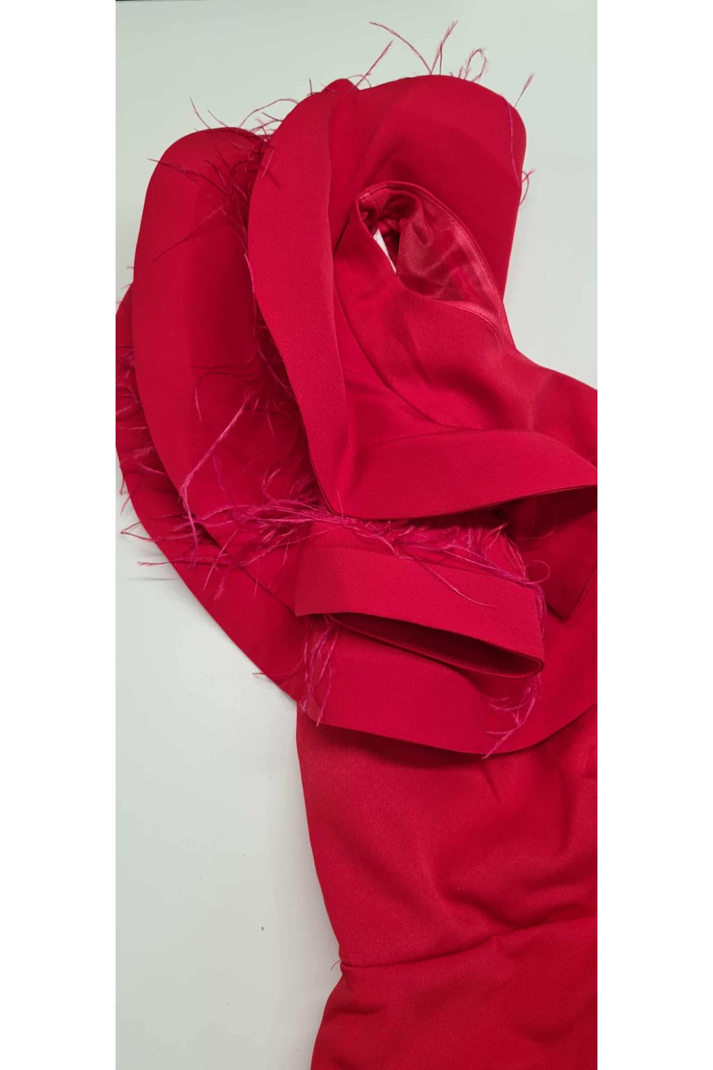 POZOR! Tento tovar je poškodený, z tohto dôvodu má zníženú cenu. Šaty majú riedke perie na voláne.