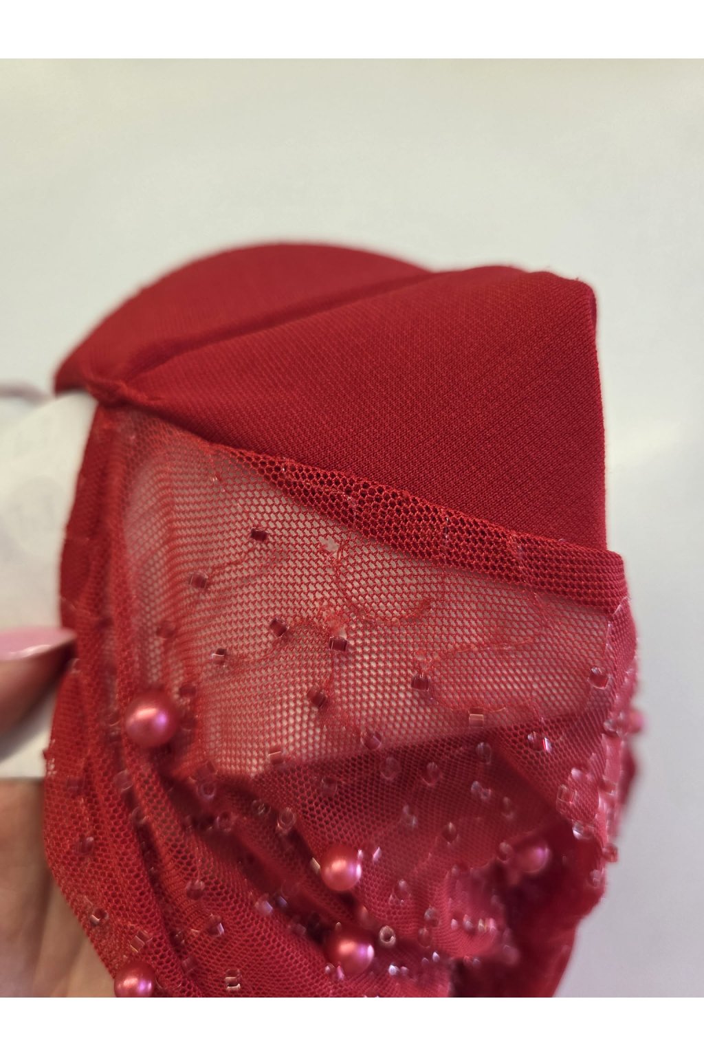 Poškodený tovar - Červené priliehavé šaty s vysokým rozparkom