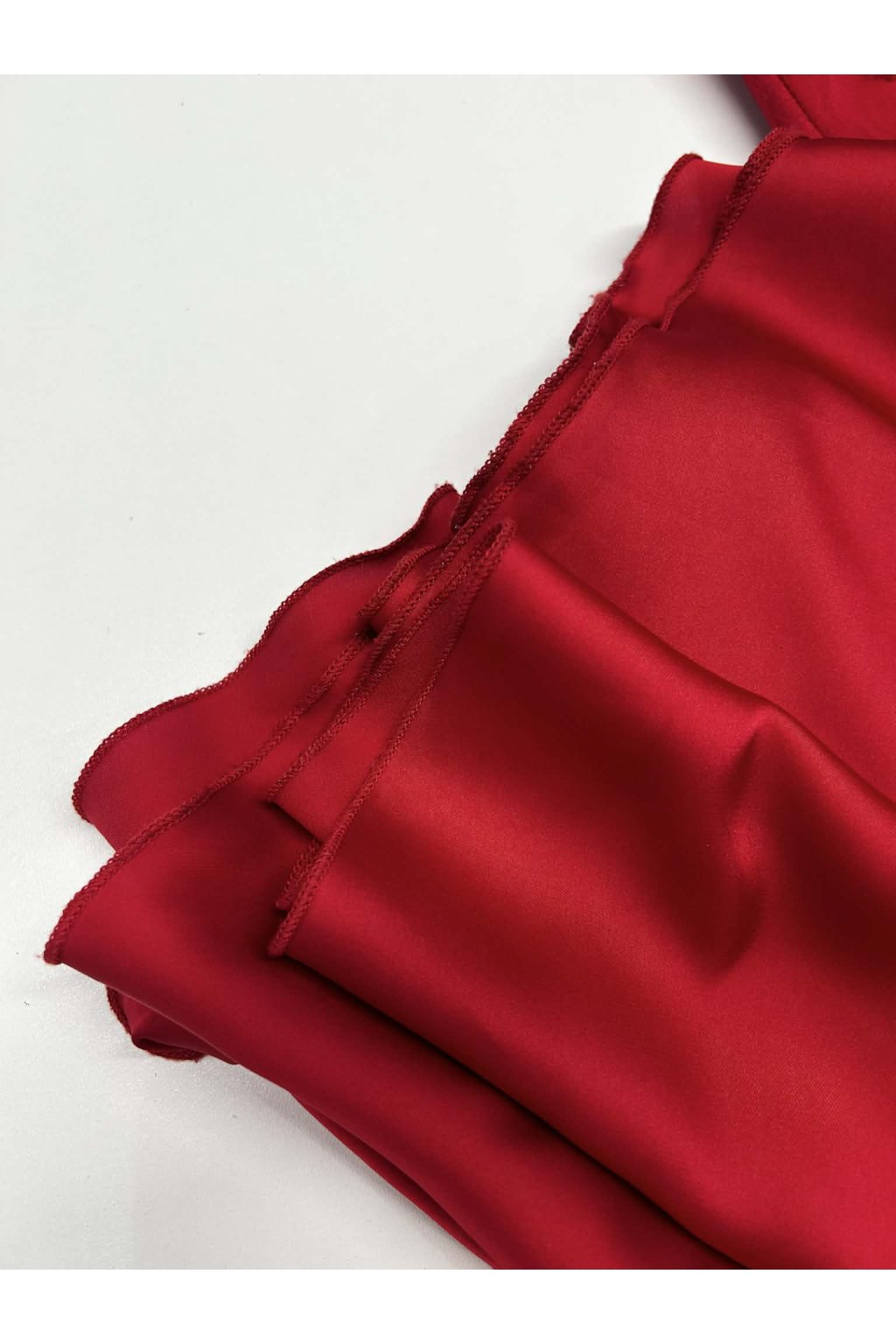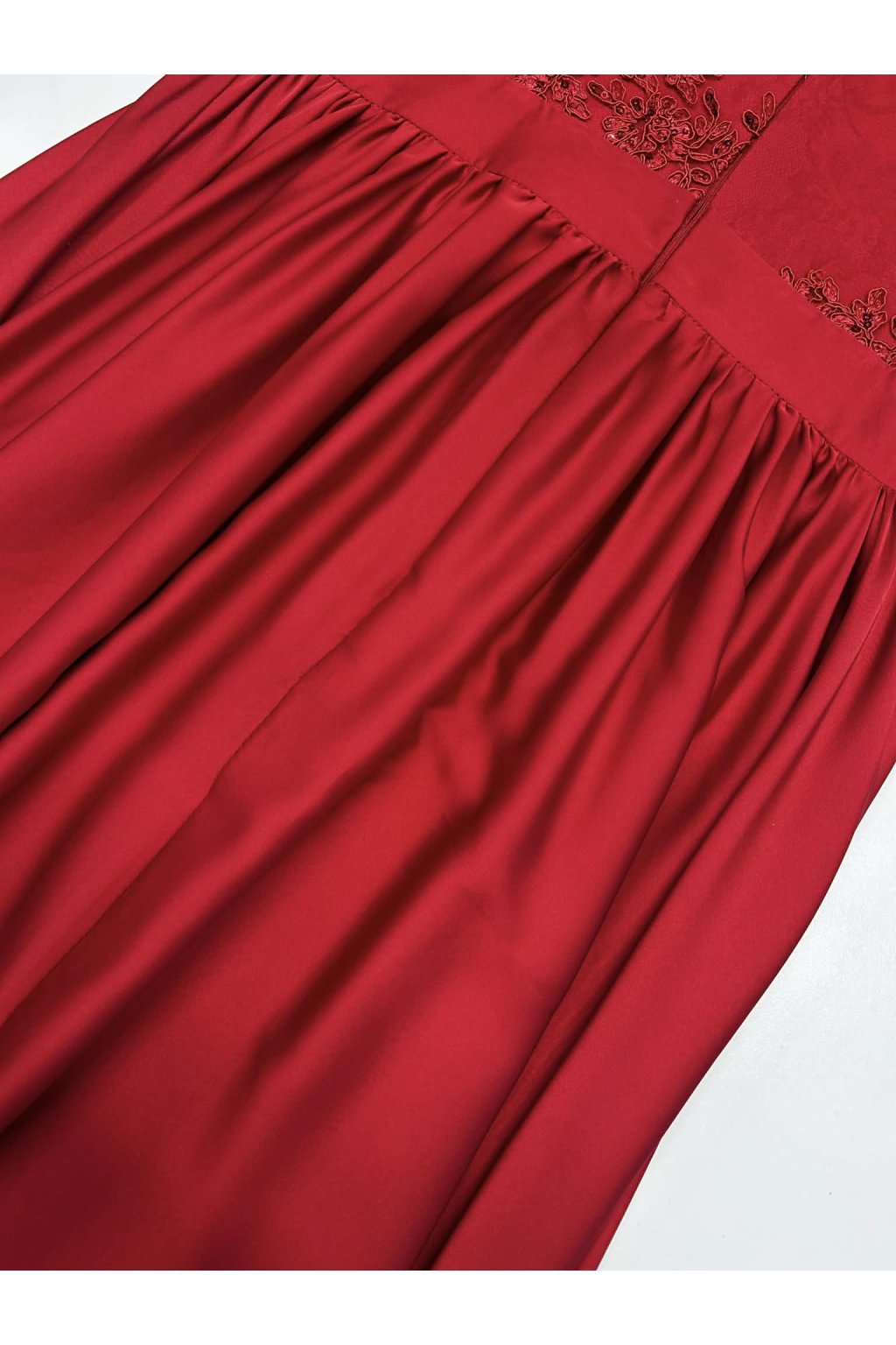 Poškodený tovar - Červené spoločenské šaty s flitrami a saténovou sukňou