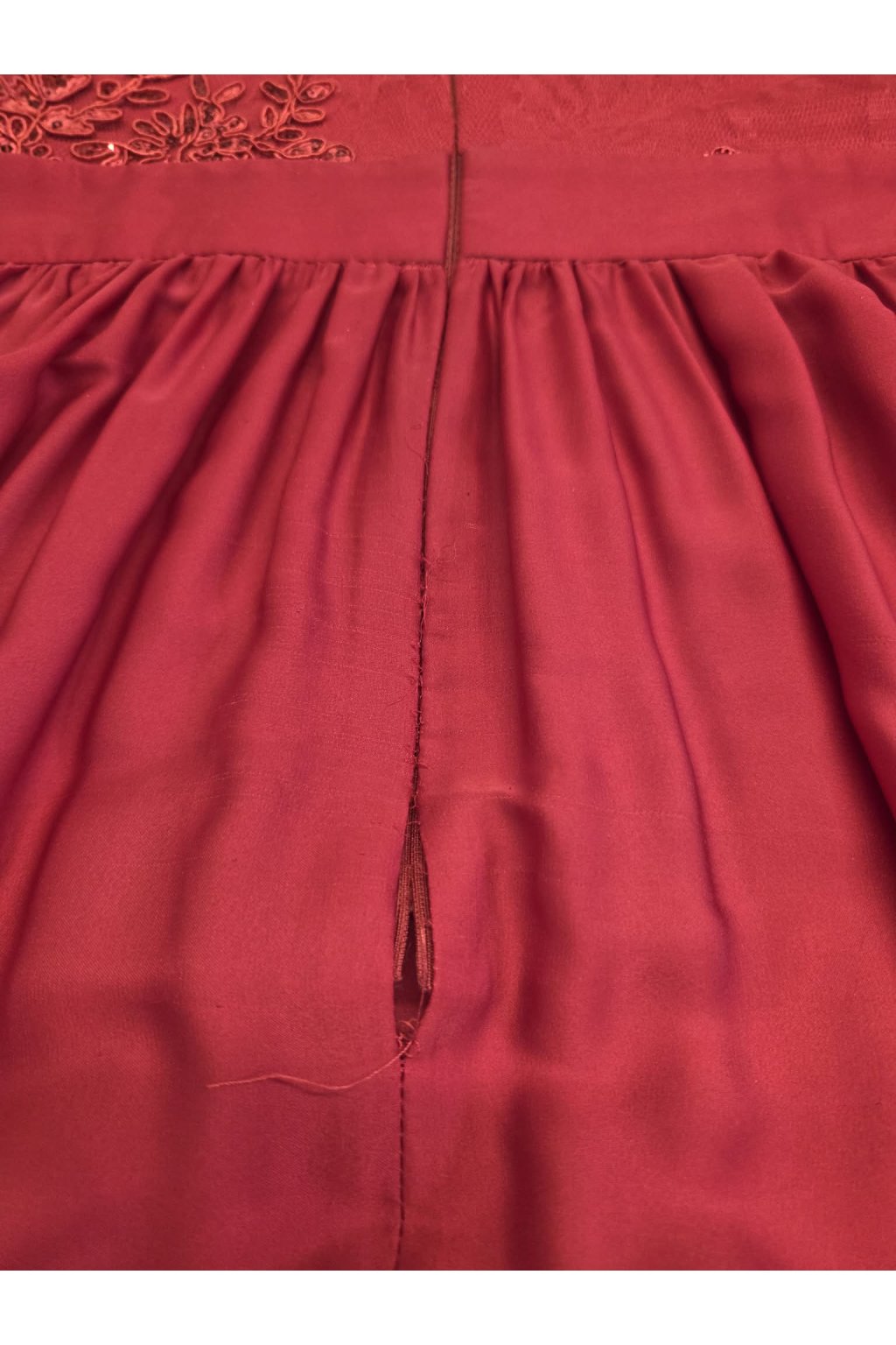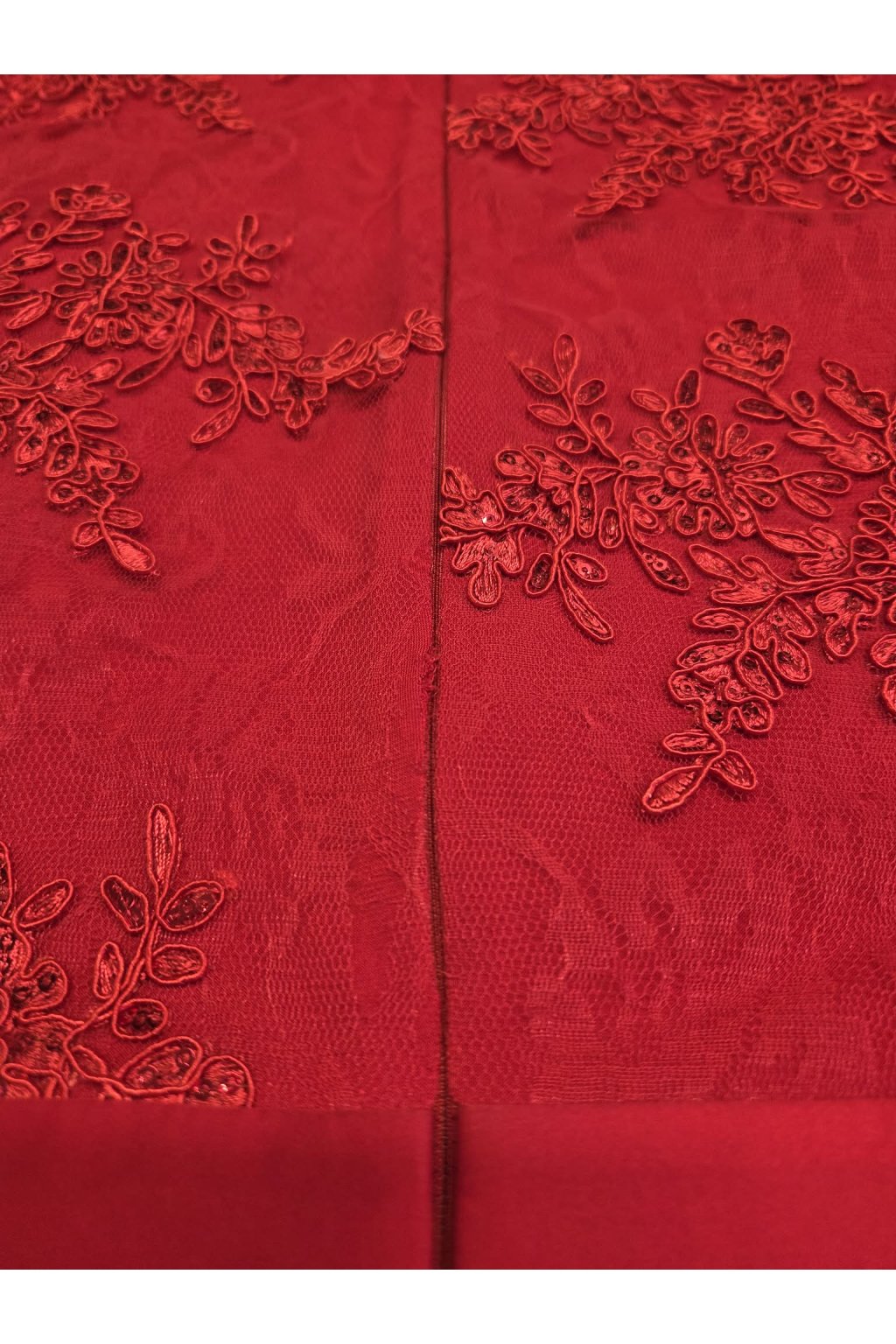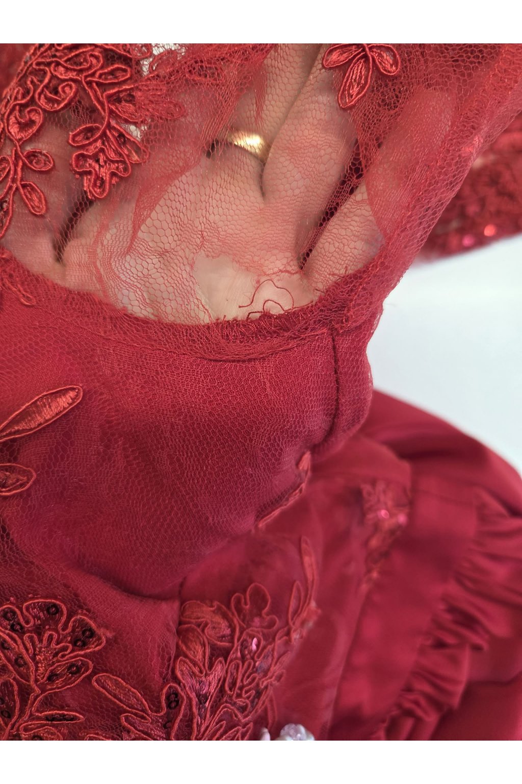Poškodený tovar - Červené spoločenské šaty s krajkou a saténovou sukňou