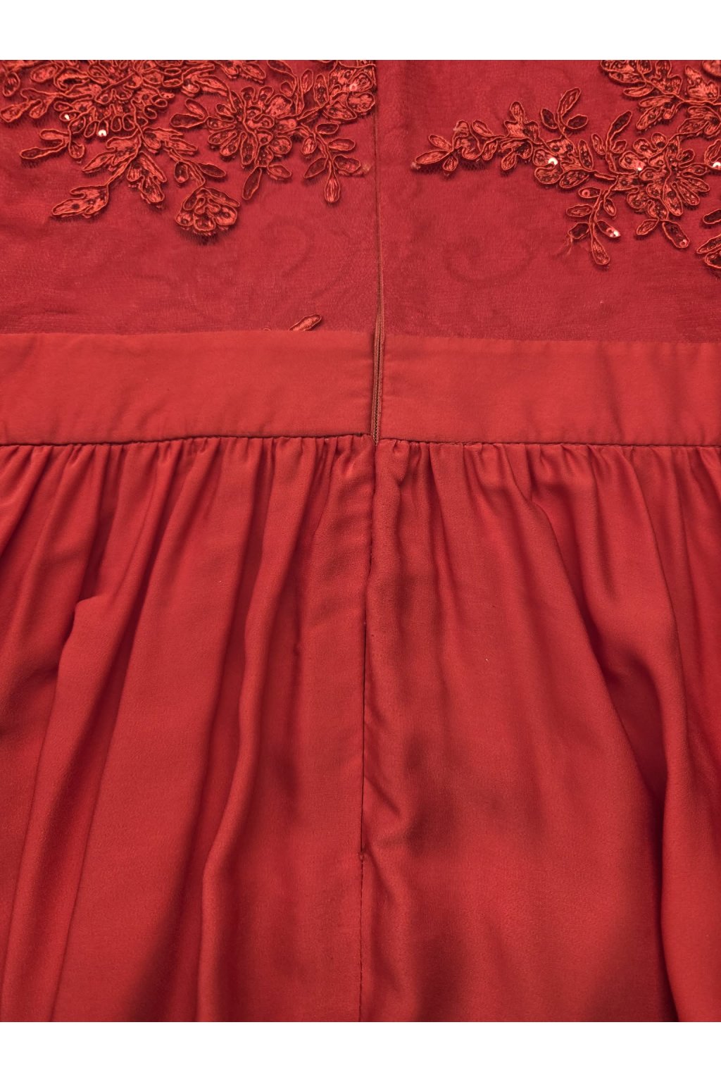 Poškodený tovar - Červené spoločenské šaty s krajkou a saténovou sukňou