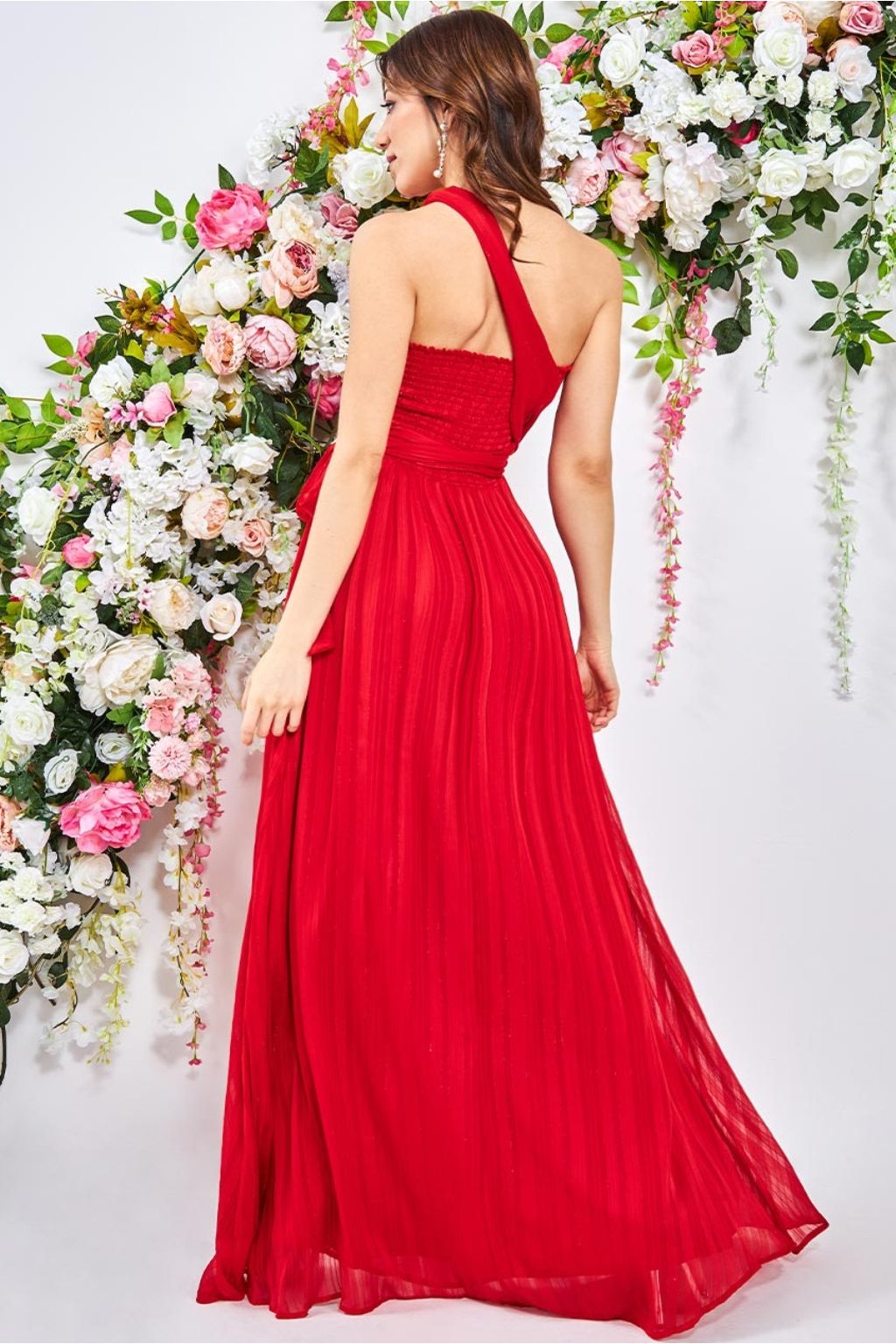 Poškodený tovar - Červené spoločenské šaty s viazaním