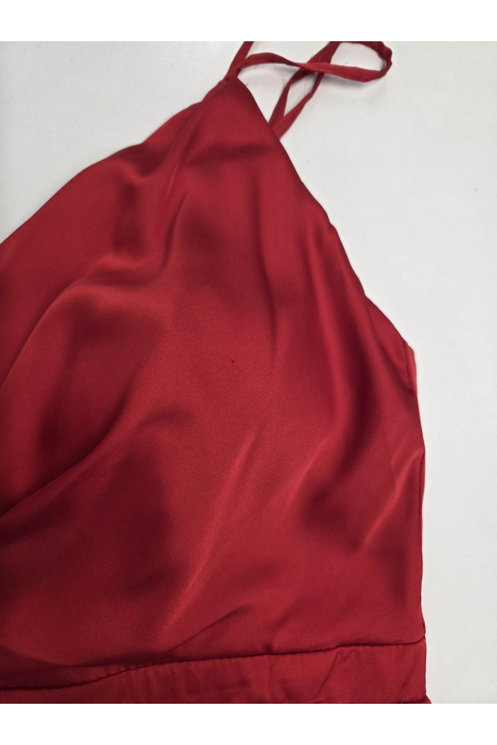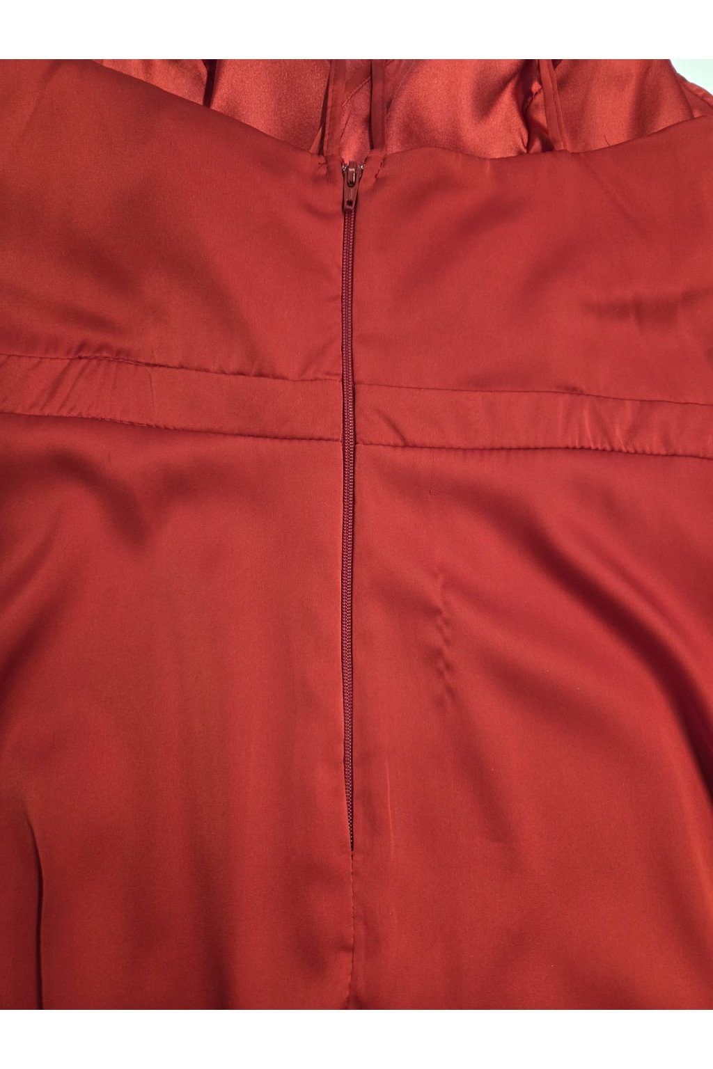 Poškodený tovar - Červené spoločenské šaty s vysokým rozparkom