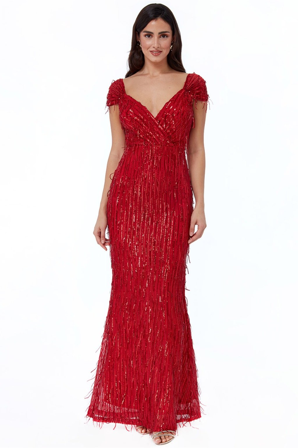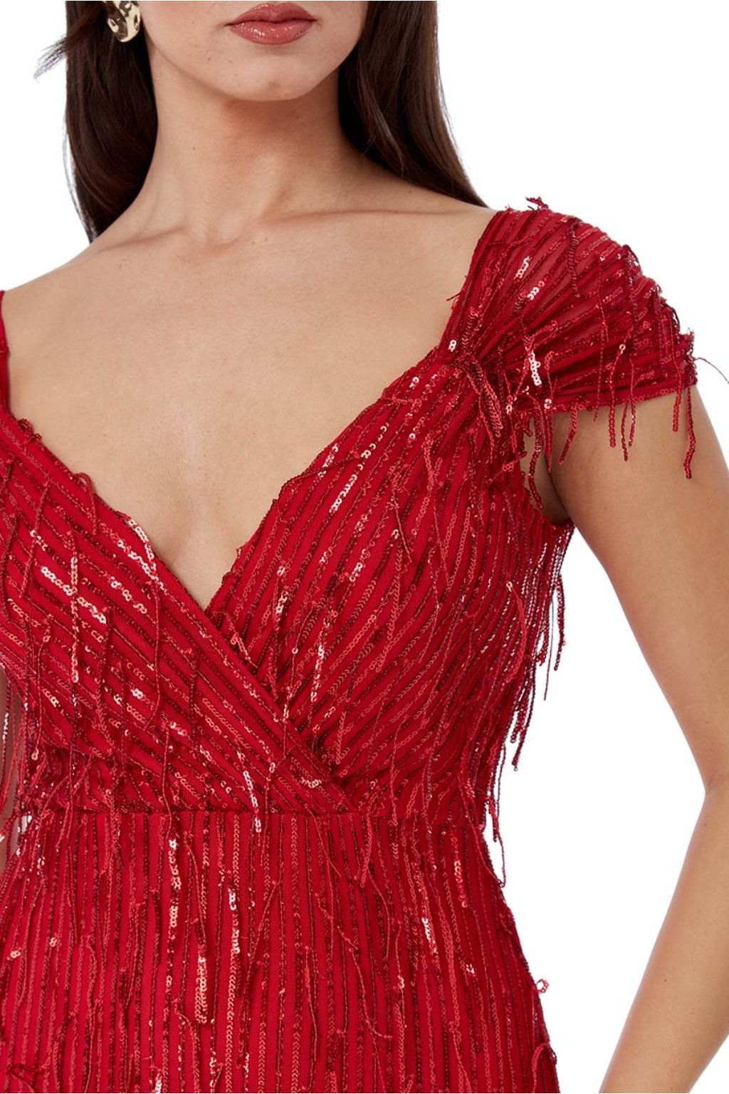 Poškodený tovar - Červené spoločenské šaty so strapcami