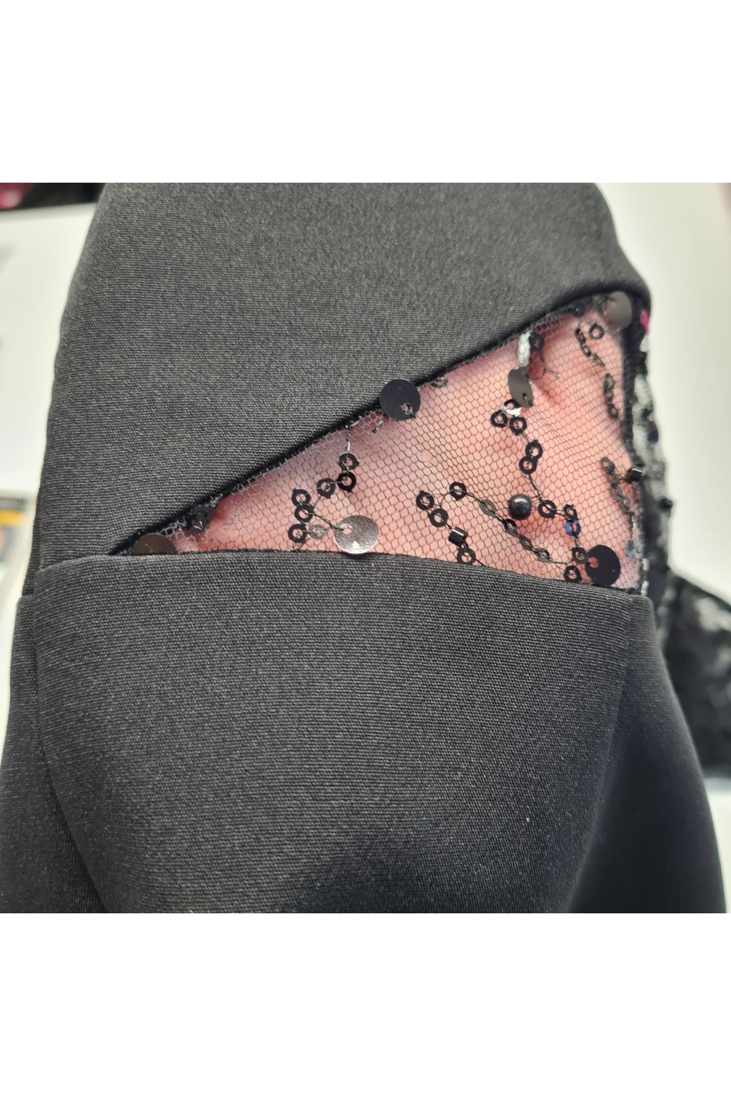 Poškodený tovar - Čierne krátke šaty s trblietavým rukávom